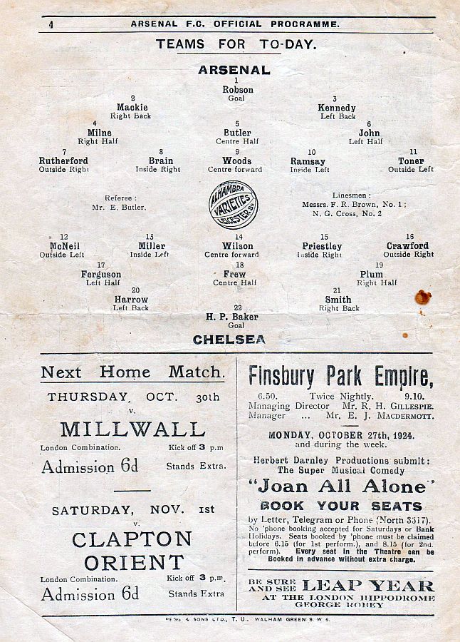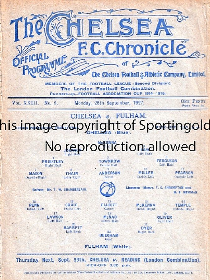 Slater, Morley, Lyons, Lawrence, Galbraith, Grimsdell, Jack, Sanders, Edmonds, Tricker, Hoar |