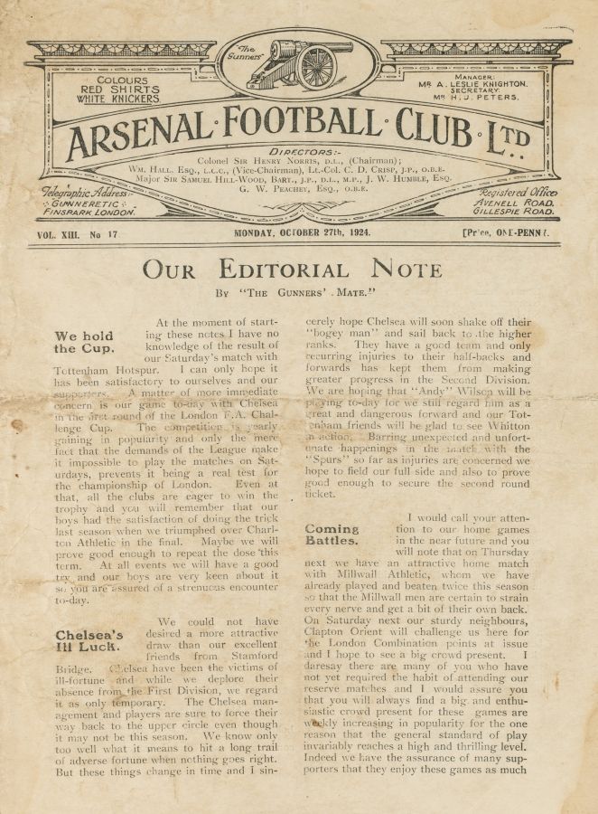 Hufton, Hodgson, Henderson, Carter, Kay, Tresadern, Richards, Moore, Watson, Crossley, Ruffell |