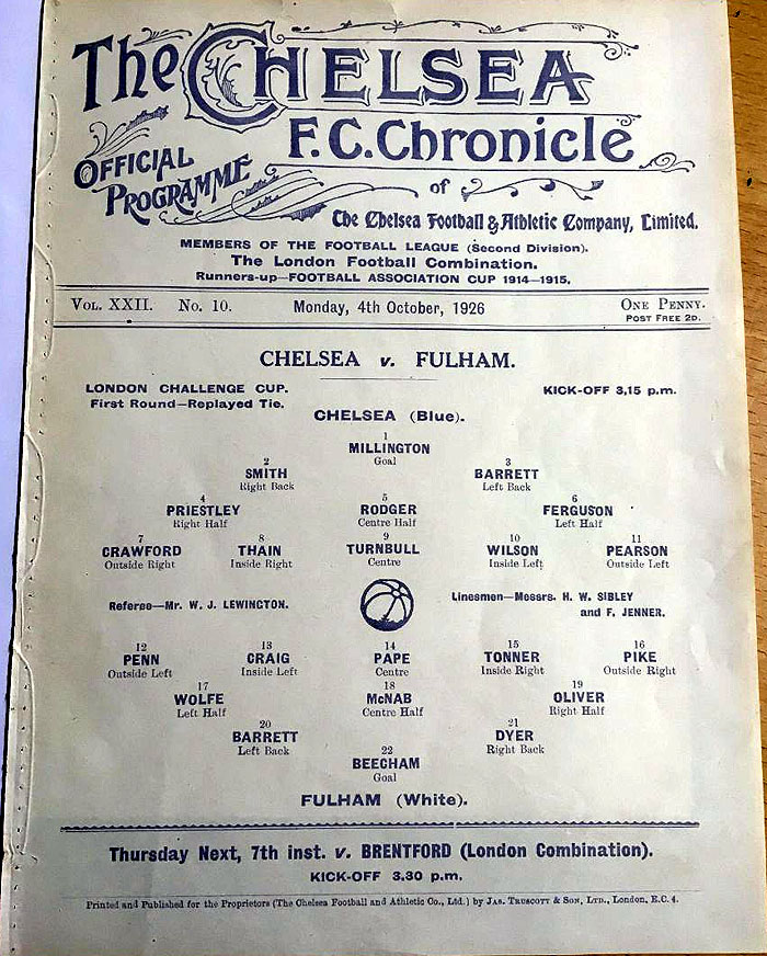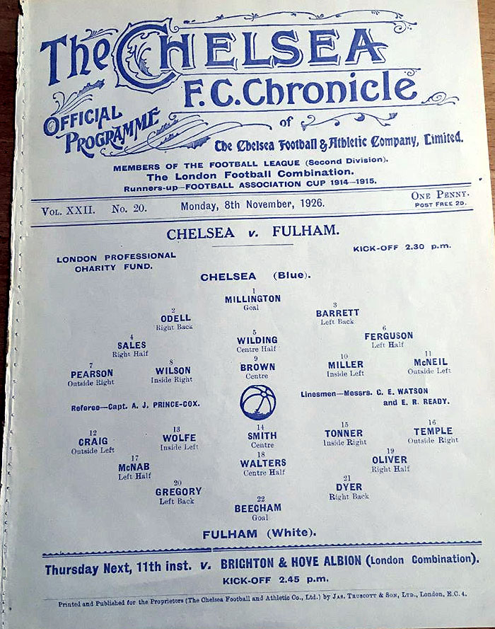 Sam Millington, George Smith, Leslie Odell, Albert Thain, Jack Townrow, Sid Bishop, Jack Meredith, Jackie Crawford, Reg Weaver, Harold Miller, George Pearson |