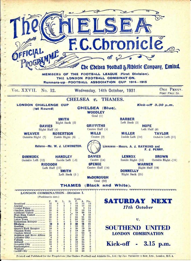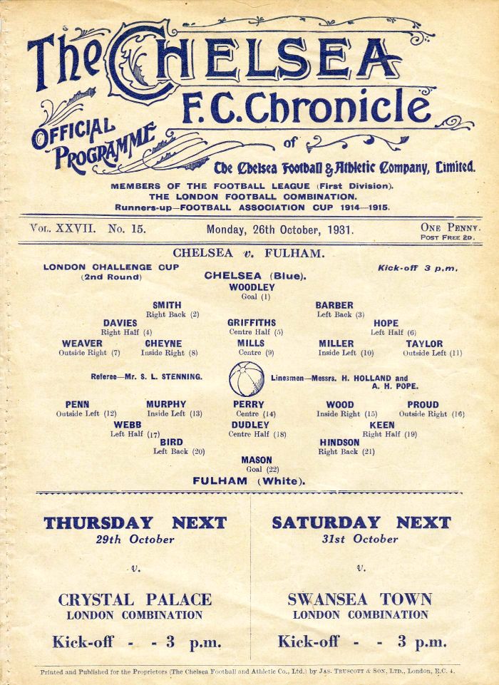 Wednesday, 14th October 1931 at 15:30 |