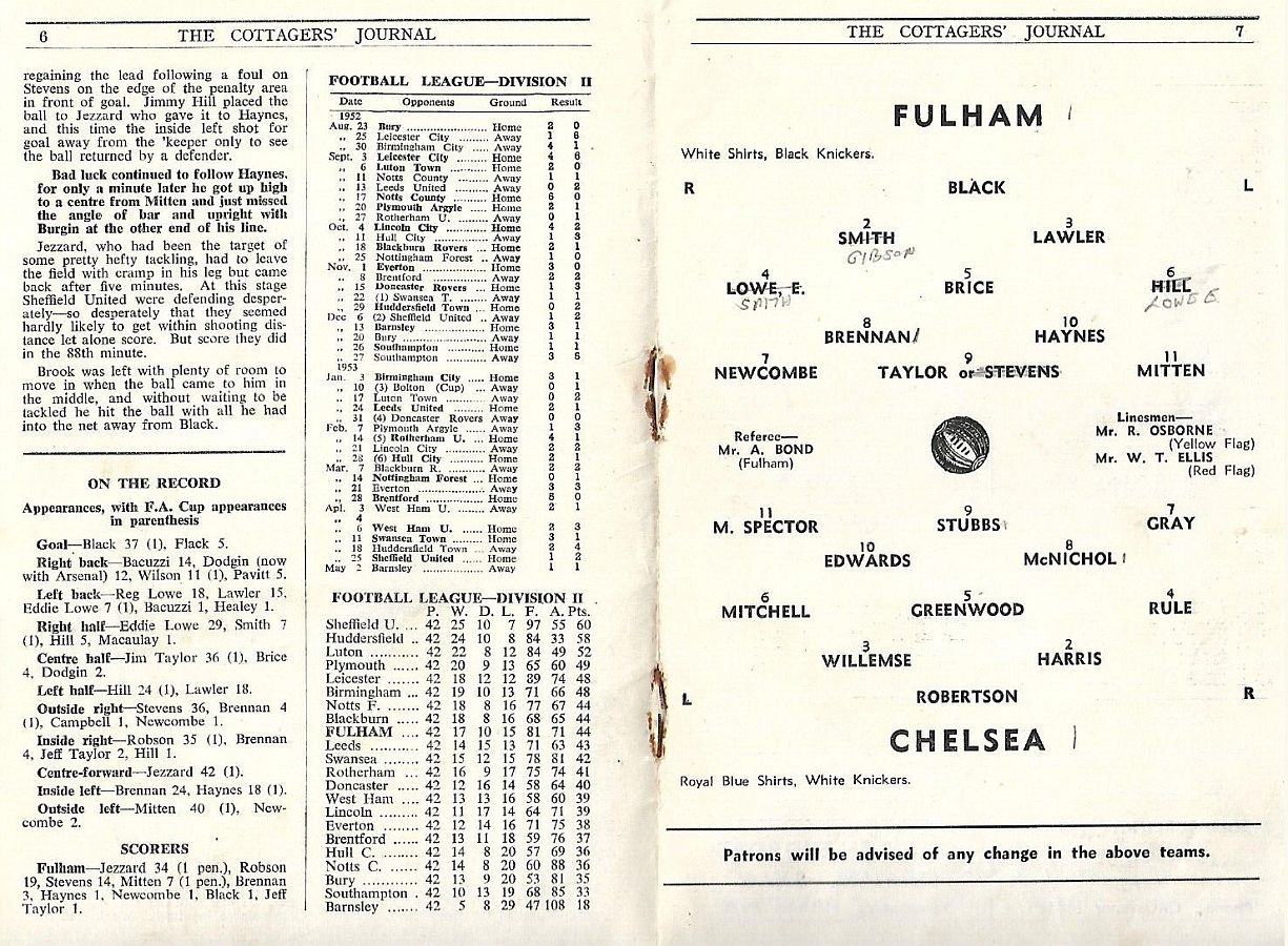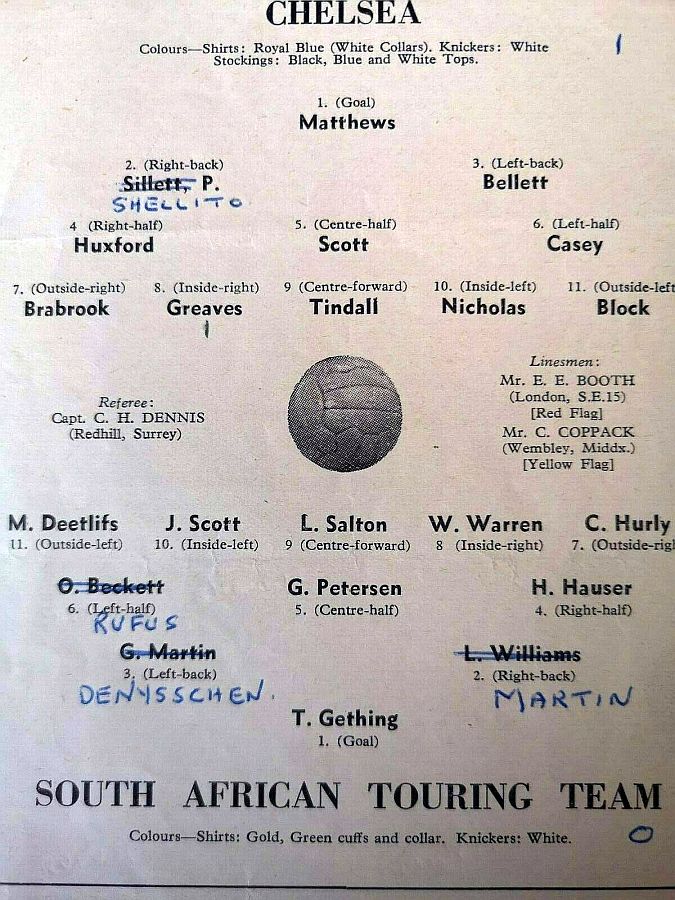 Charlie Thomson, John Harris, Stan Willemse, Ken Armstrong, Ron Greenwood, Derek Saunders, Eric Parsons, John McNichol, Roy Bentley, Les Stubbs, Frank Blunstone |