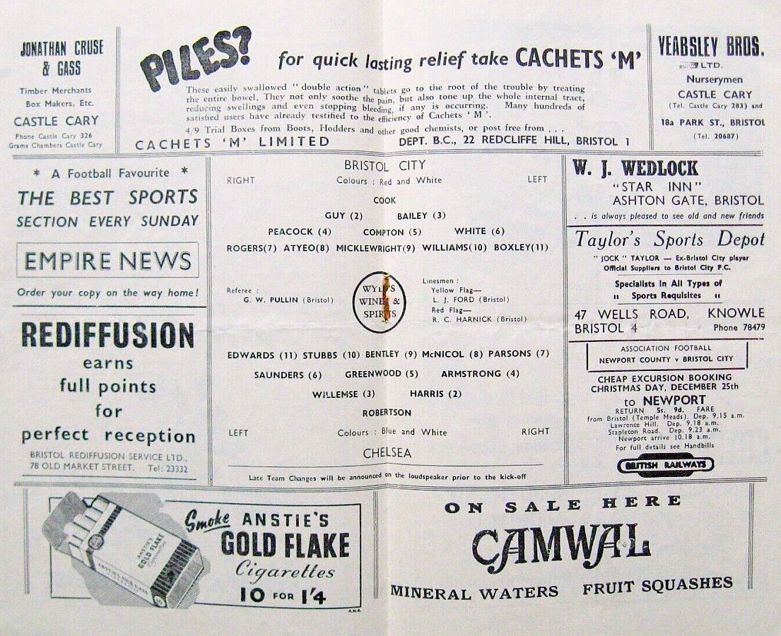 Bill Robertson, Peter Sillett, Stan Willemse, Andy Bowman, Jack Saunders, Alan Dicks, Eric Parsons, John McNichol, Roy Bentley, Bobby Smith, Frank Blunstone |