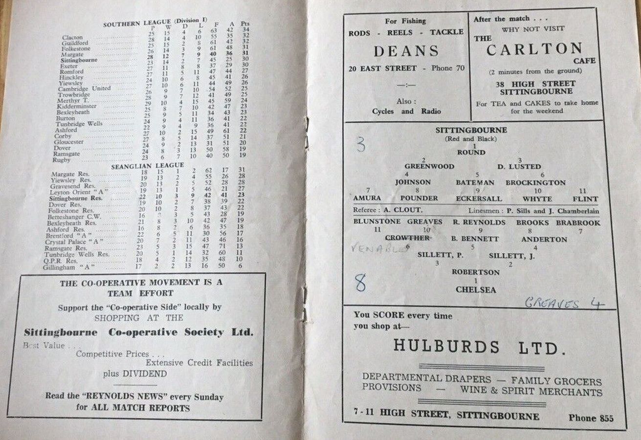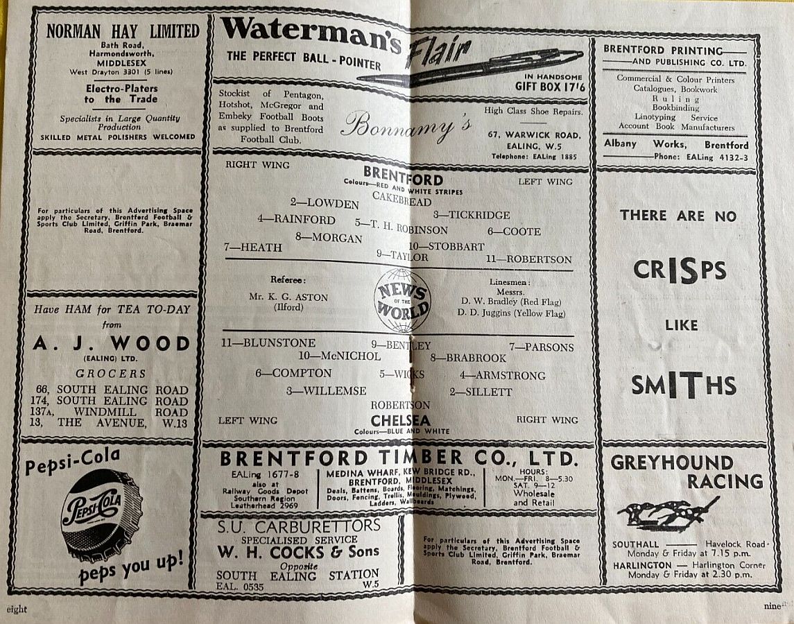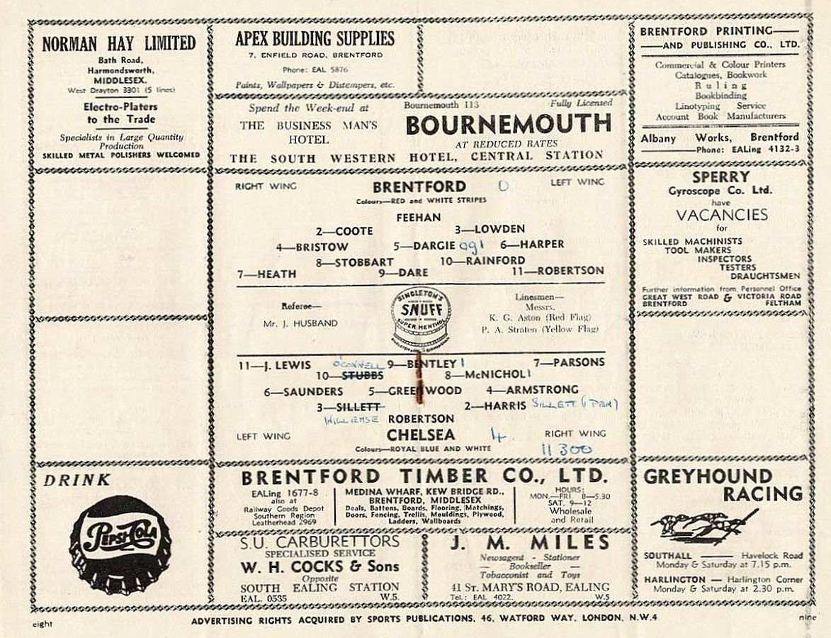 Bill Robertson, John Sillett, Peter Sillett, Terry Venables, B Bennett, Sylvan Anderton, Peter Brabrook, Johnny Brooks, Ted Reynolds, Jimmy Greaves, Frank Blunstone |