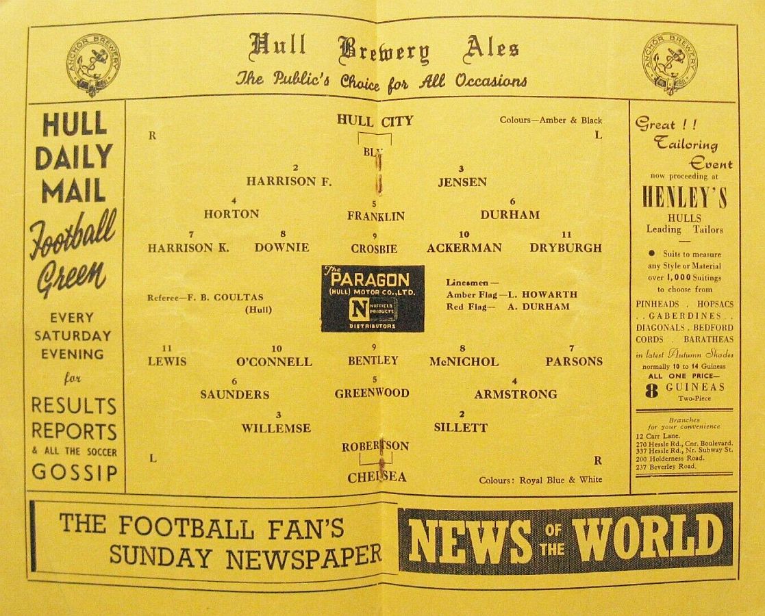 Williams, Thompson (Dykes 46), Snade (Hailstones 46), Hazledine, Galley, Lowder, Darroch, Johnny Garvie (Tommy Garvie 46), James, Mooney, Eric Lister |