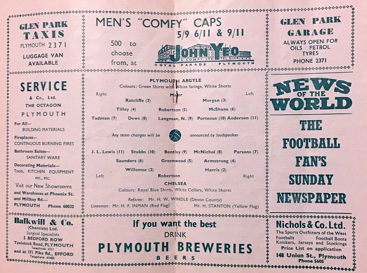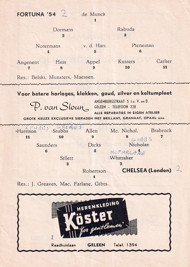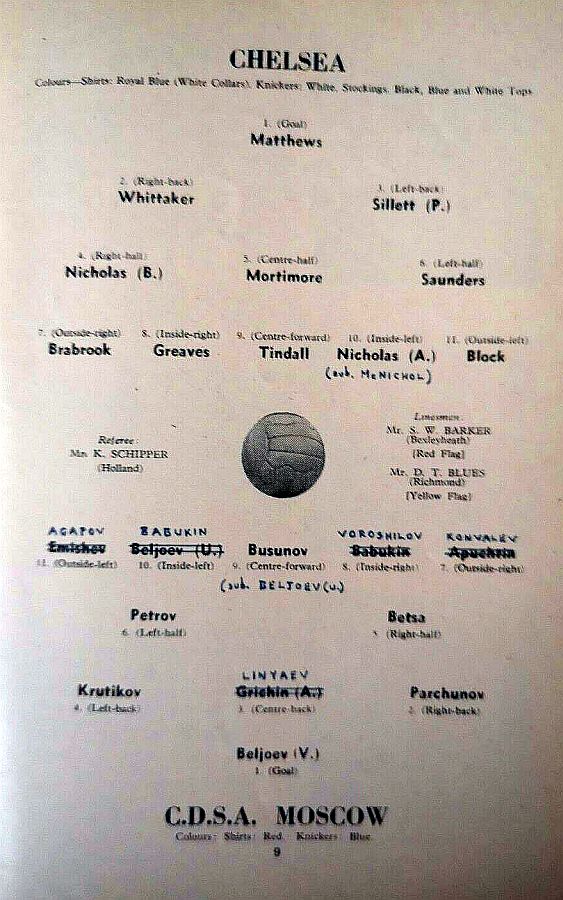Peter Bonetti, Ken Shellito, Peter Sillett, Sylvan Anderton, John Mortimore, John Compton, Peter Corthine, Jimmy Greaves, Barry Bridges, Derek Gibbs, Michael Block |