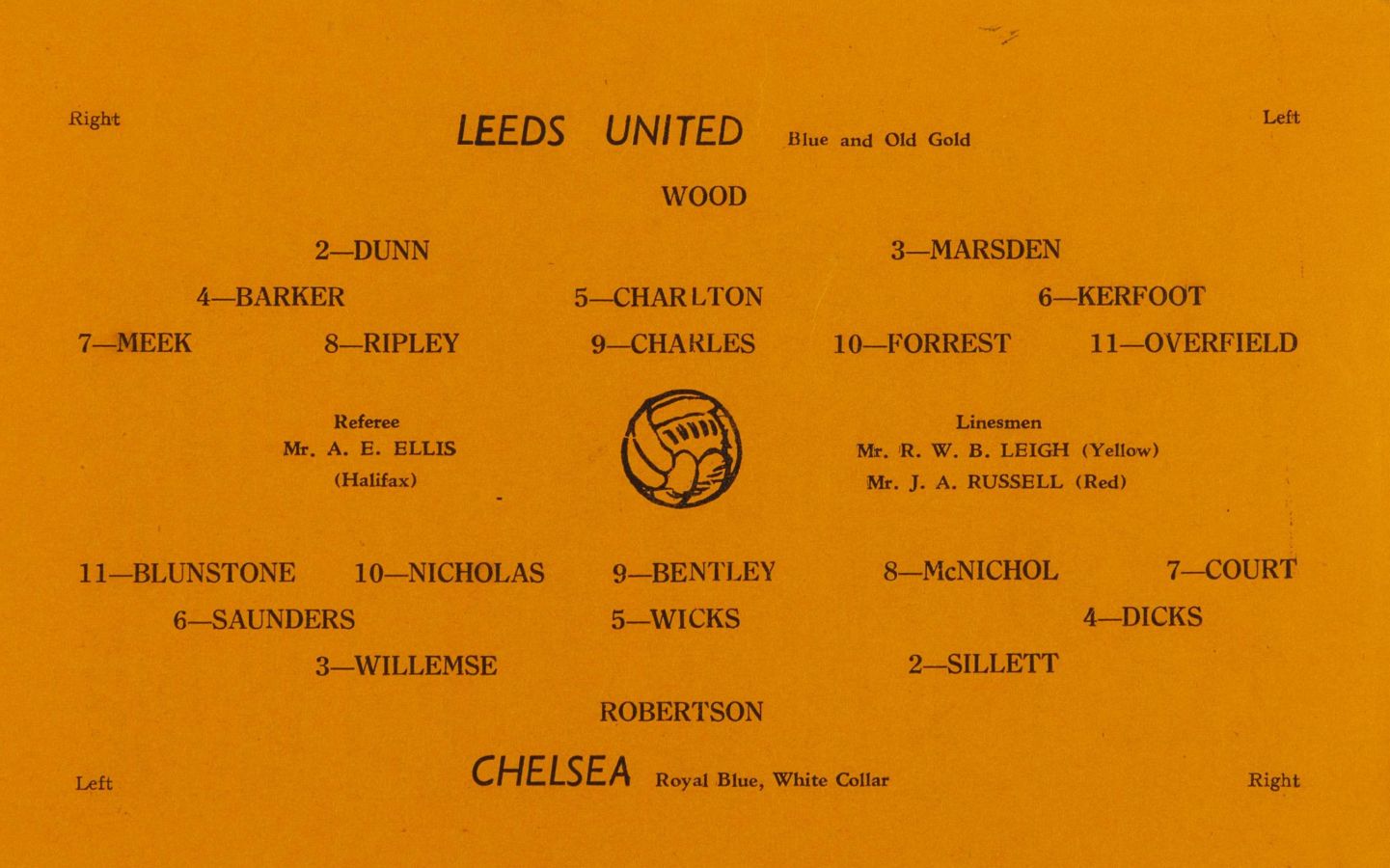 Bill Robertson, John Harris, Stan Willemse, Ken Armstrong, Jack Saunders, Phil McNight, Bobby Campbell, Roy Bentley, Jim Lewis, Len Kell, Jimmy Smith |