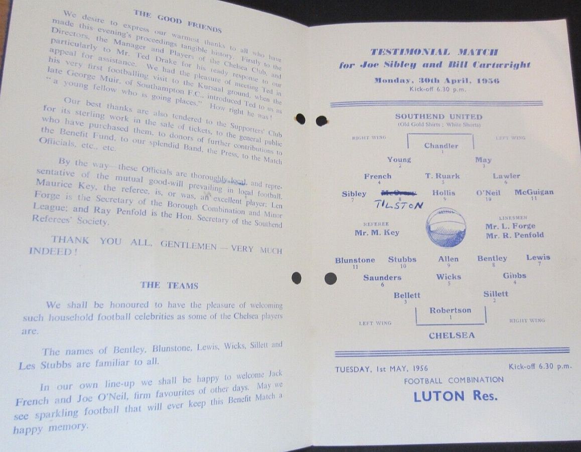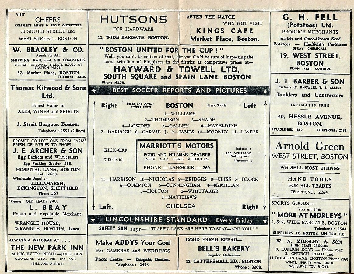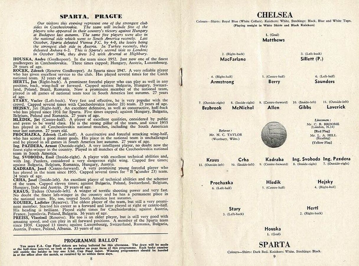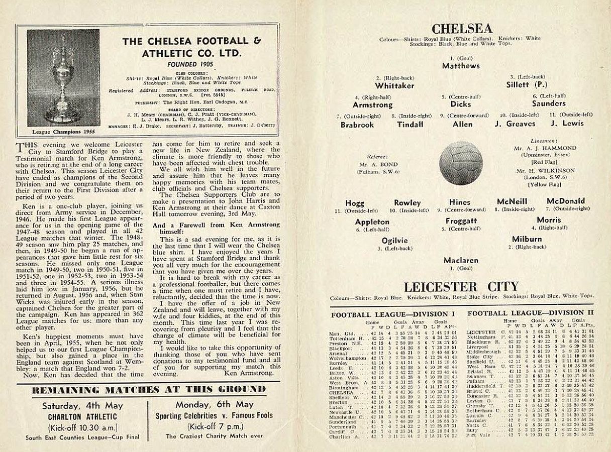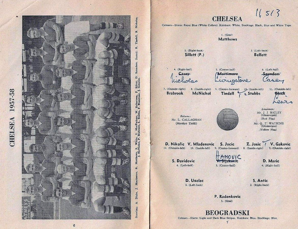 Reg Matthews, Ken Shellito, Peter Sillett, Sylvan Anderton, John Mortimore, Stan Crowther, Peter Brabrook, Jimmy Greaves, Charlie Livesey, Les Allen, Frank Blunstone |