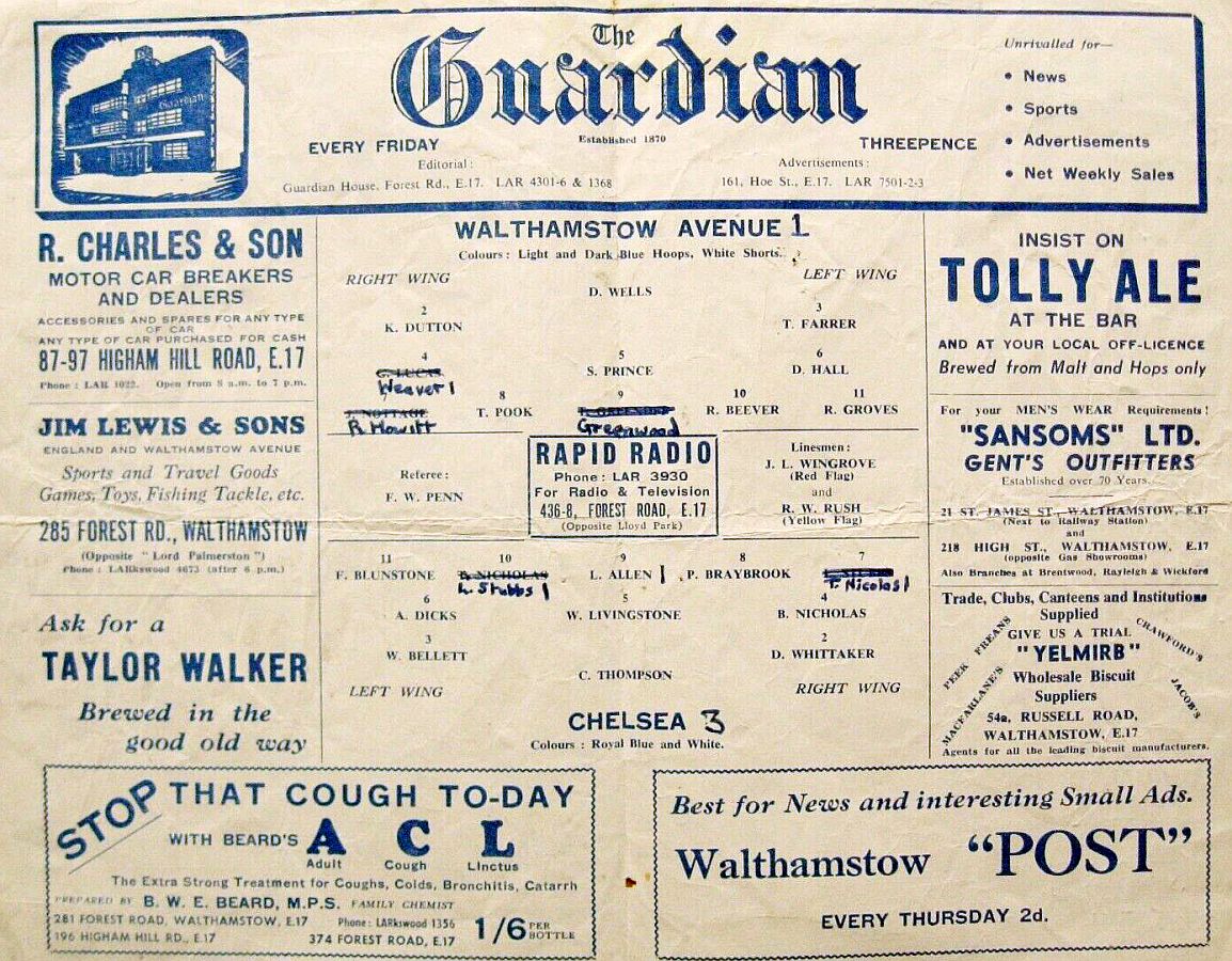Reynolds 10, Greaves 15, Greaves 16, Brabrook 50, Greaves, 62, Blunstone 69, Greaves 70, Reynolds 82 |