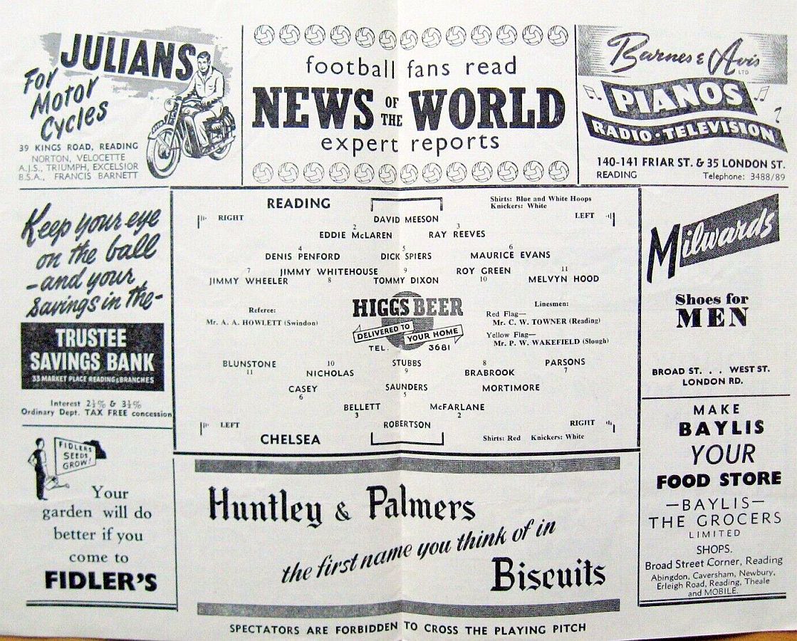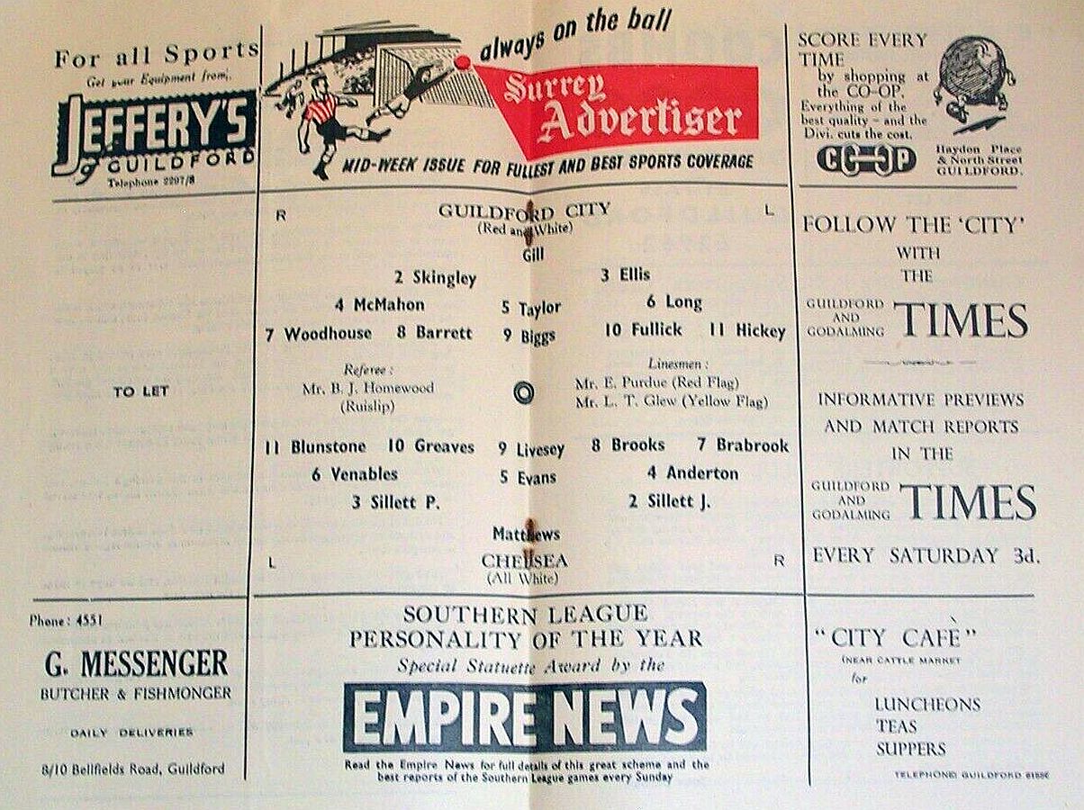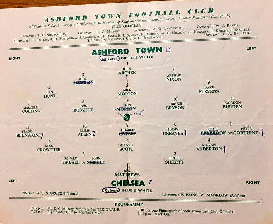 Reg Matthews, John Sillett, Peter Sillett, Sylvan Anderton, John Mortimore, John Compton, Peter Brabrook, Jimmy Greaves, Derek Gibbs, Ron Tindall, Frank Blunstone |
