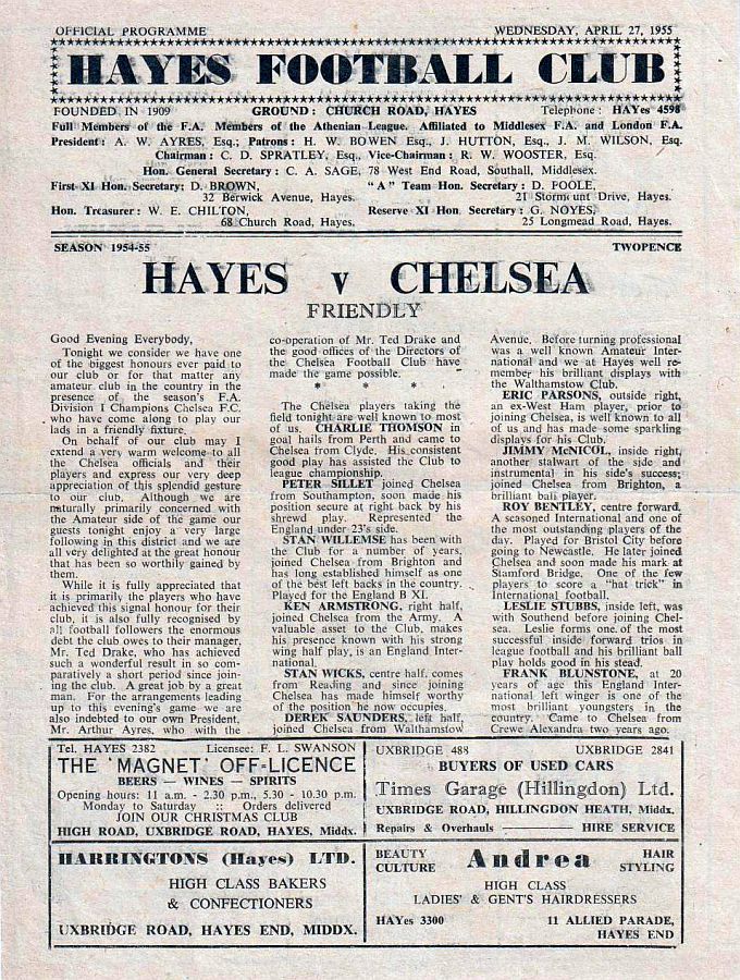 Charlie Thomson, Peter Sillett, Stan Willemse, Ken Armstrong, Ron Greenwood, Derek Saunders, Bobby Campbell, John McNichol, Bobby Smith, Les Stubbs, Frank Blunstone |