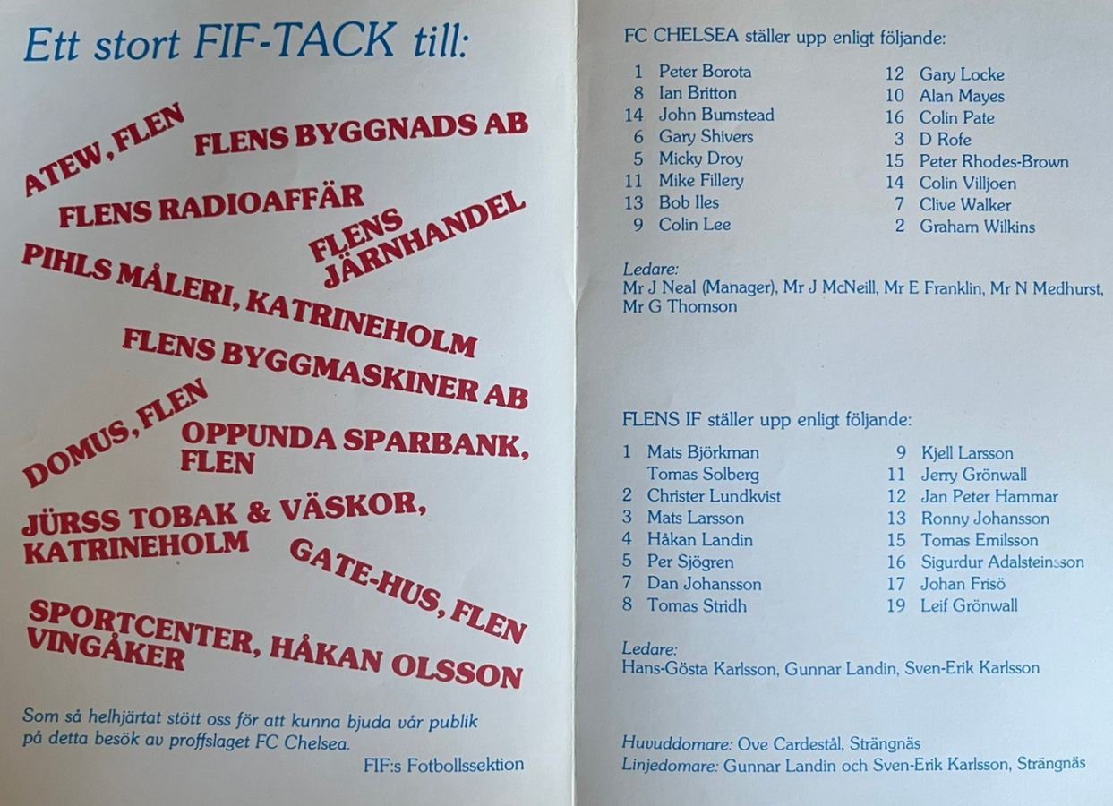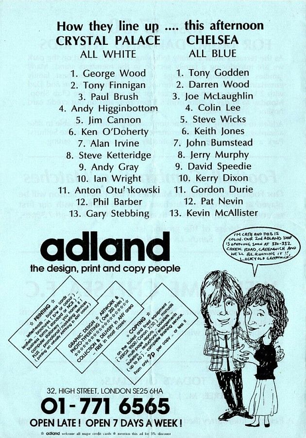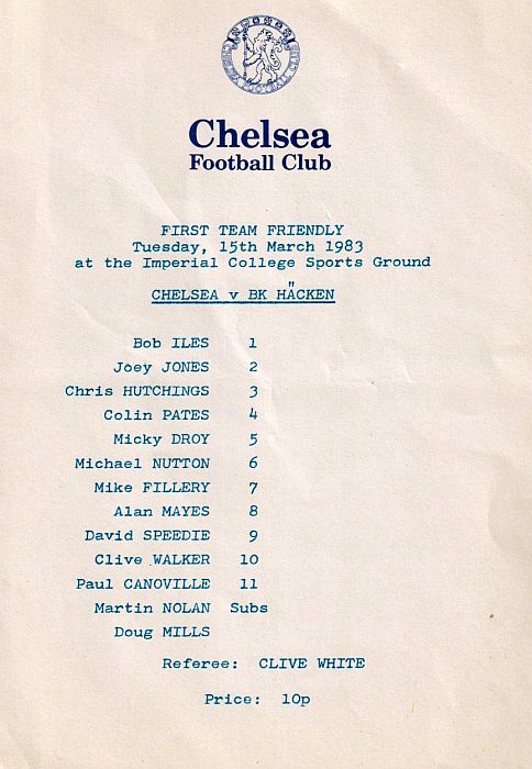 Bob Iles, Gary Locke, Dennis Rofe, Mickey Nutton, Micky Droy, Colin Pates, Paul Canoville (Ian Britton), Colin Lee, Clive Walker (Graham Wilkins), Alan Mayes, Mike Fillery |
