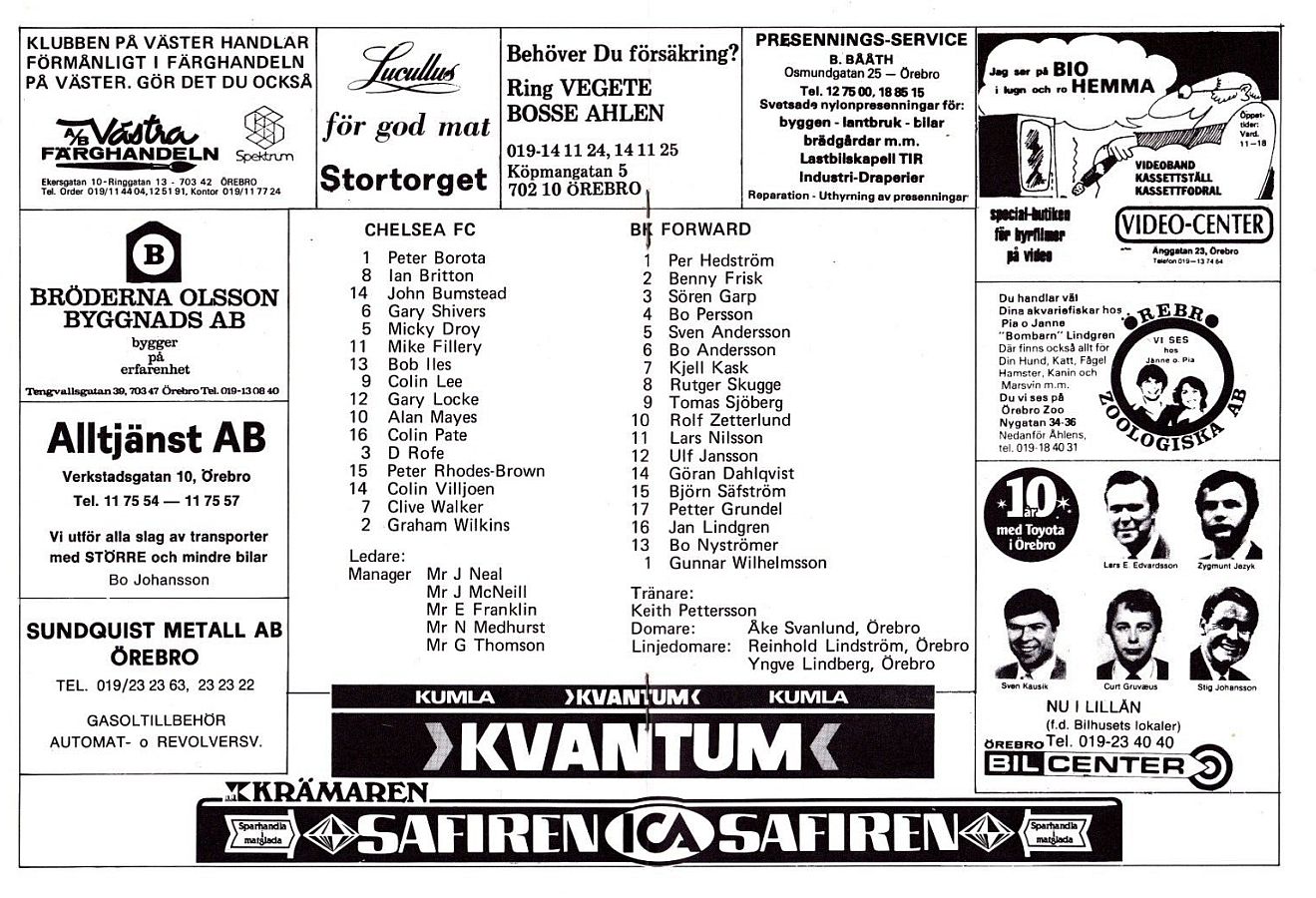 Petar Borota (Bob Iles 46), Graham Wilkins (Gary Locke 46), Dennis Rofe (Chris Hutchings 46), Colin Viljoen (John Bumstead 46), Micky Droy (Colin Pates 46), Gary Chivers (Mickey Nutton 46), Clive Walker (Phil Driver 46), Ian Britton (Timmy Elmes 46), Colin Lee, Alan Mayes (Kevin Hales 46), Mike Fillery (Peter Rhoades-Brown 46) |