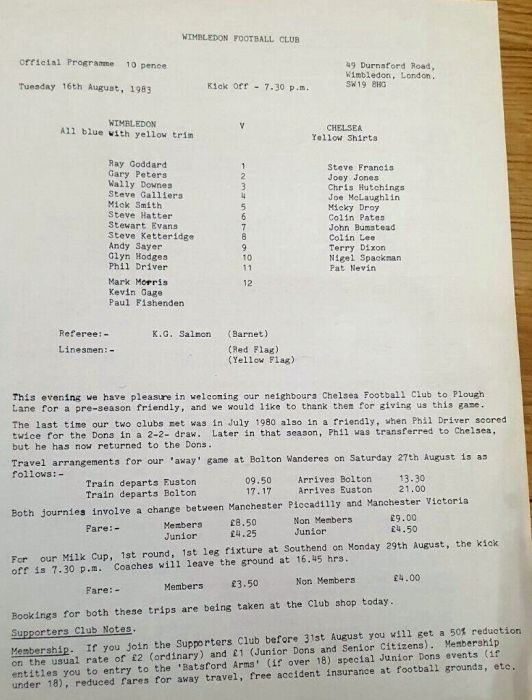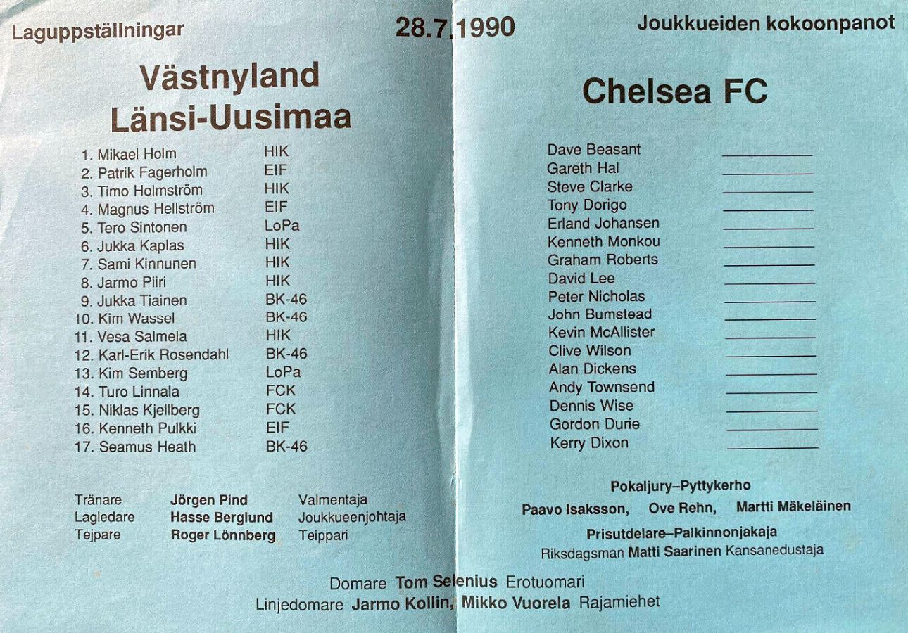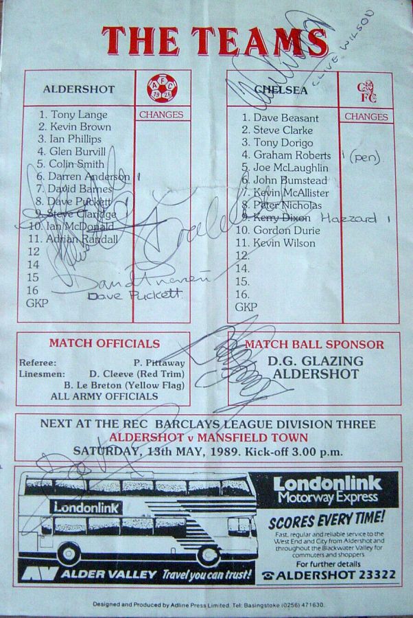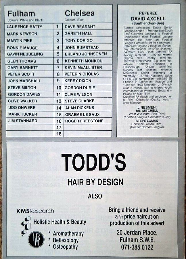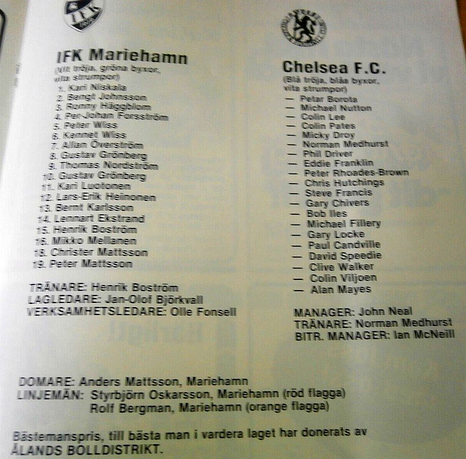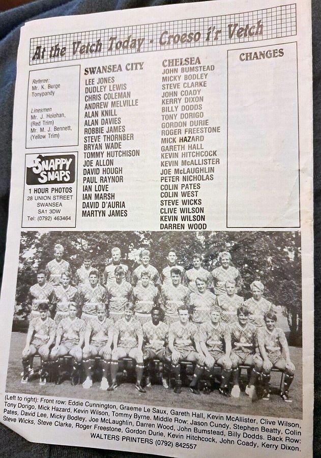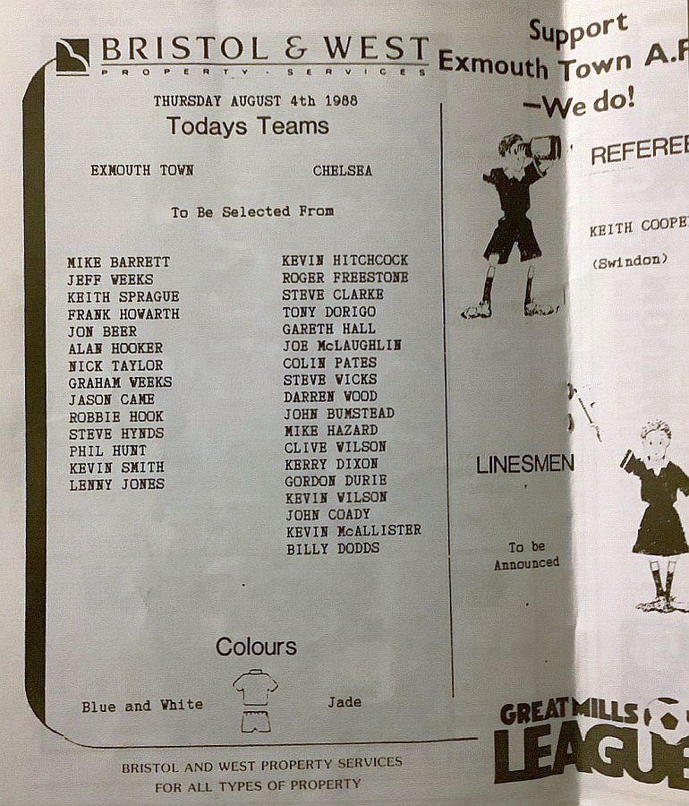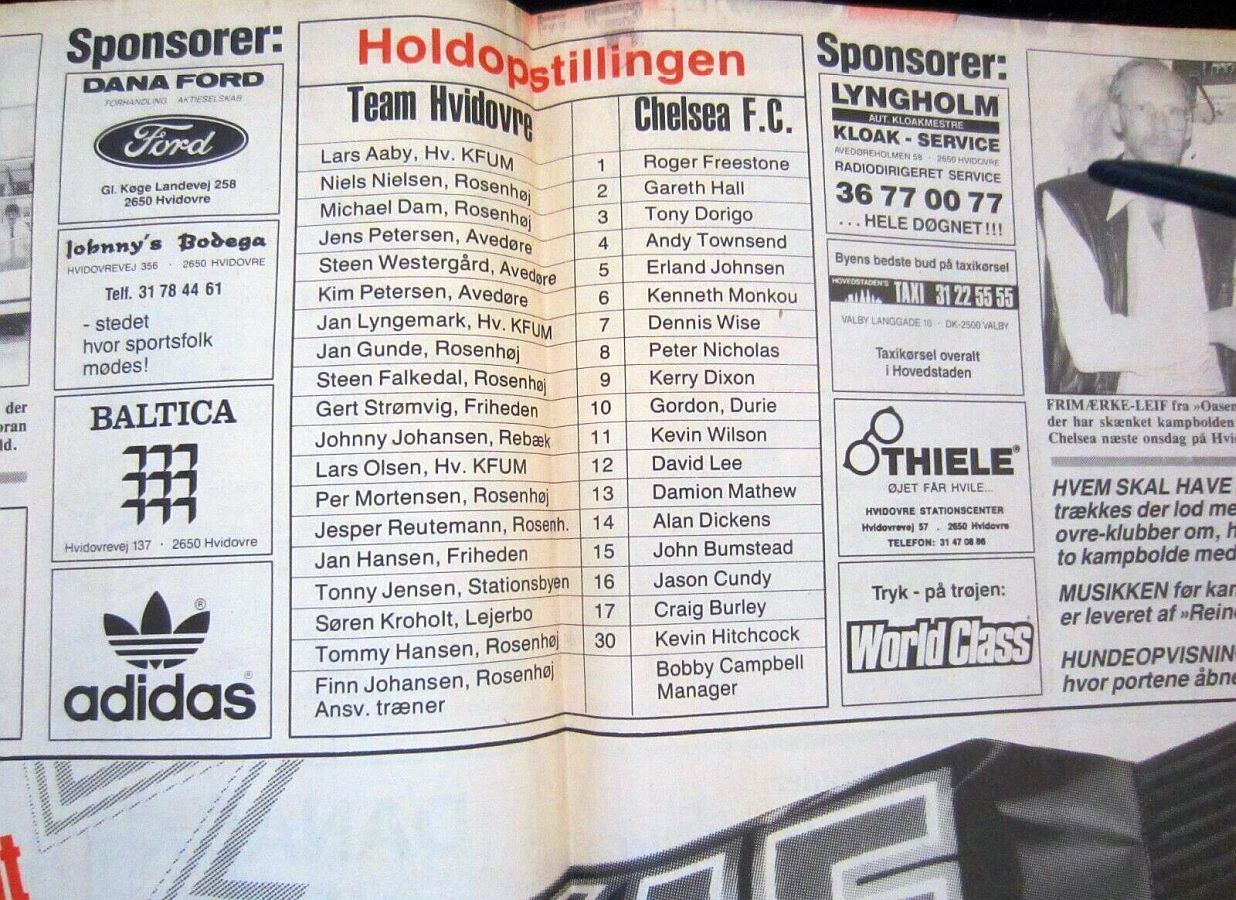 Kevin Hitchcock, Gareth Hall (Steve Clarke), Erland Johnsen, Andy Townsend (Damian Matthew), Jason Cundy (Frank Sinclair), Ken Monkou (Graeme Le Saux) (Dave Beasant), Alan Dickens (Eddie Newton), Kerry Dixon (Graham Stuart), Gordon Durie (Kevin Wilson), Dennis Wise, Unknown |