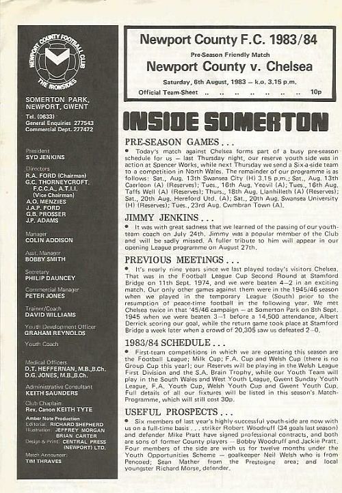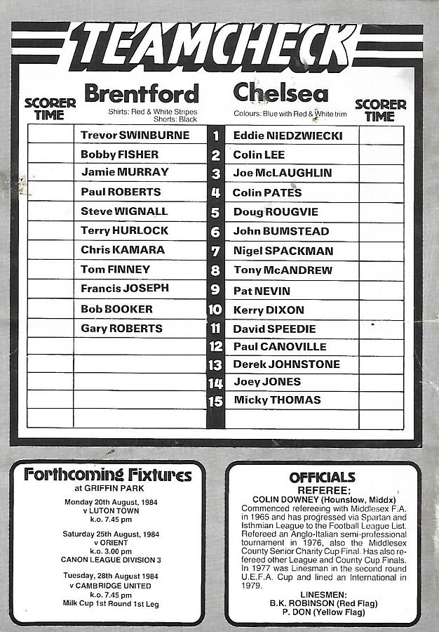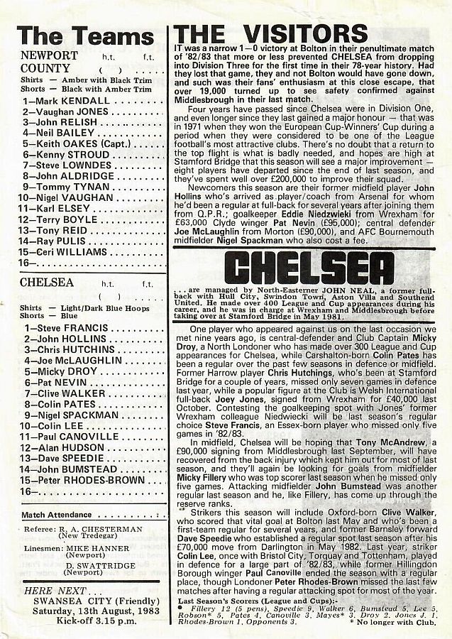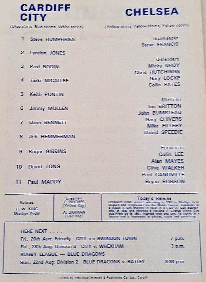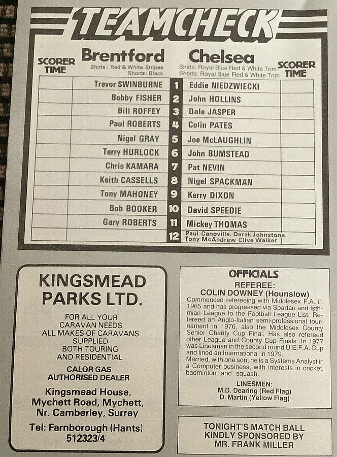 Steve Francis (Bob Iles), Graham Wilkins, Chris Hutchings (D Ross), Mike Fillery, Micky Droy, Colin Pates, Clive Walker, John Bumstead (Ian Britton), Colin Lee, Alan Mayes, Peter Rhoades-Brown |