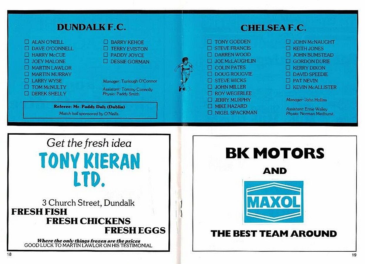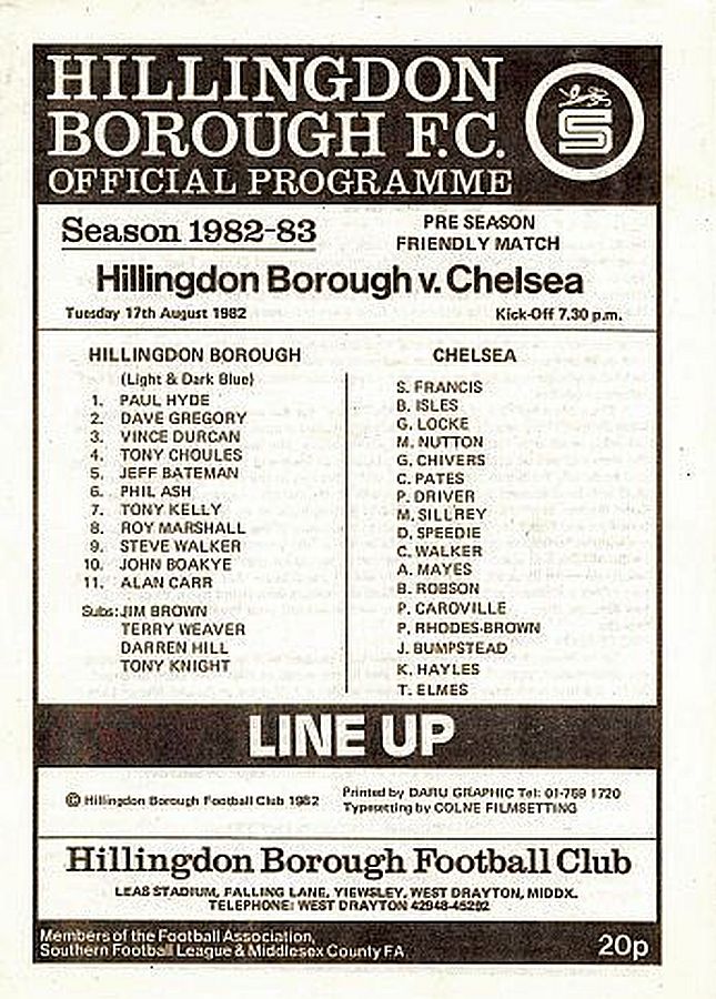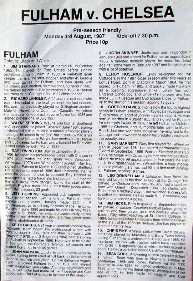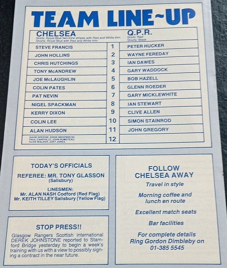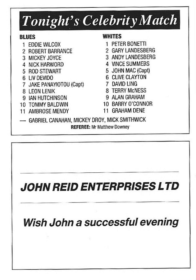 Roger Freestone, Jason Cundy, John Bumstead, Andy Townsend, Erland Johnsen, David Lee, Dennis Wise, Peter Nicholas, Kerry Dixon (Alan Dickens), Gordon Durie, Kevin Wilson |
