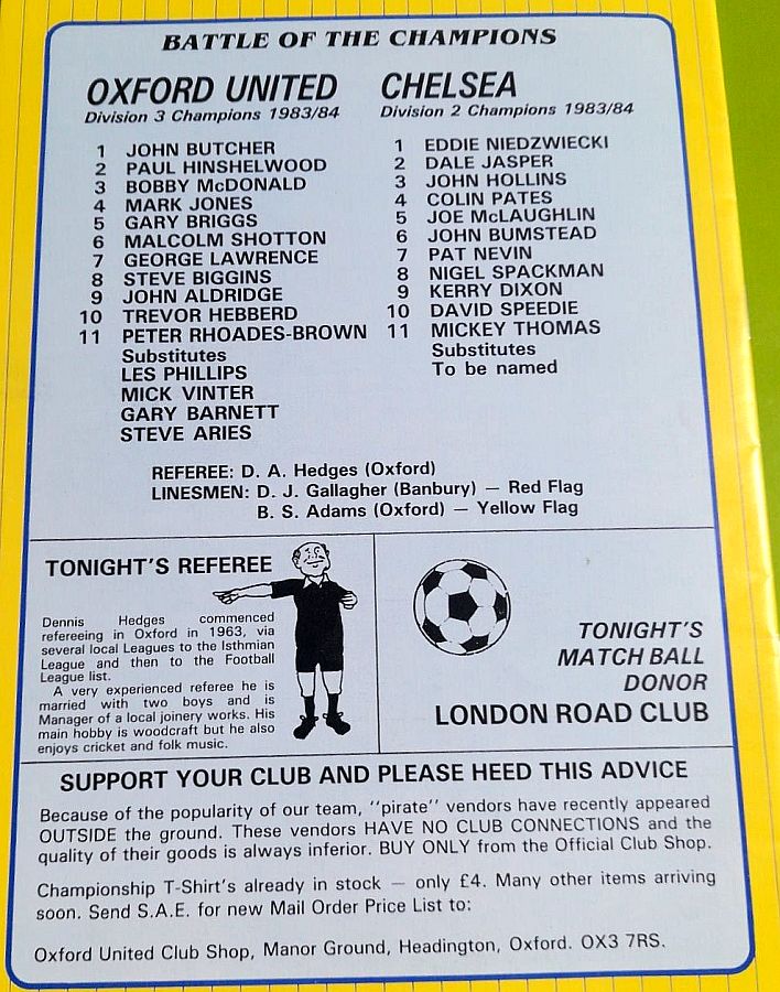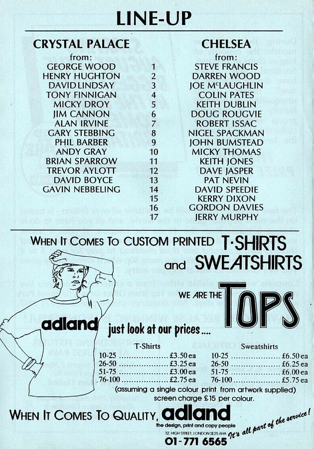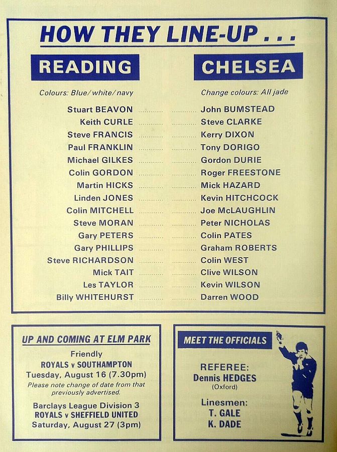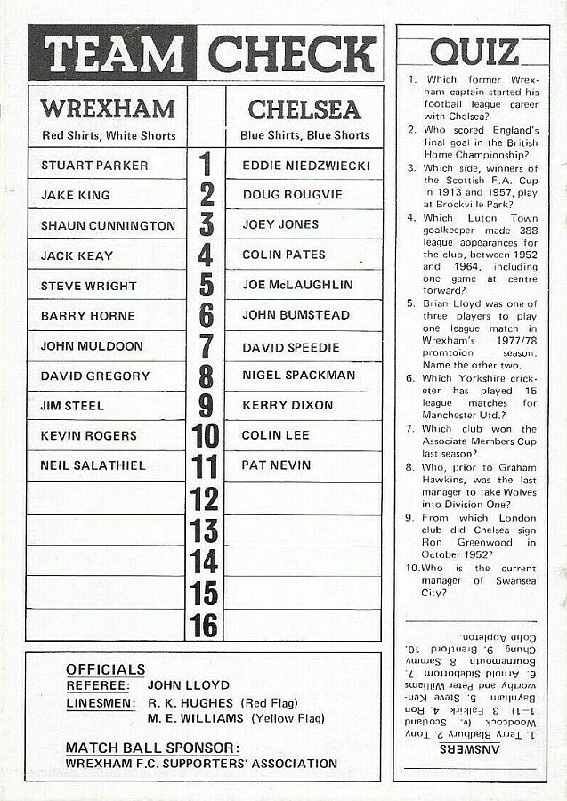 Steve Francis, Gary Locke, Mickey Nutton, Gary Chivers, Micky Droy, Colin Pates, Phil Driver, Mike Fillery, Bryan Robson (Alan Mayes), David Speedie (Clive Walker), Paul Canoville |