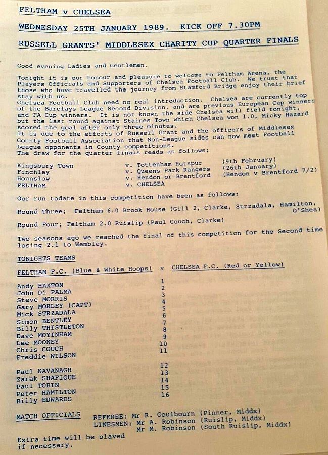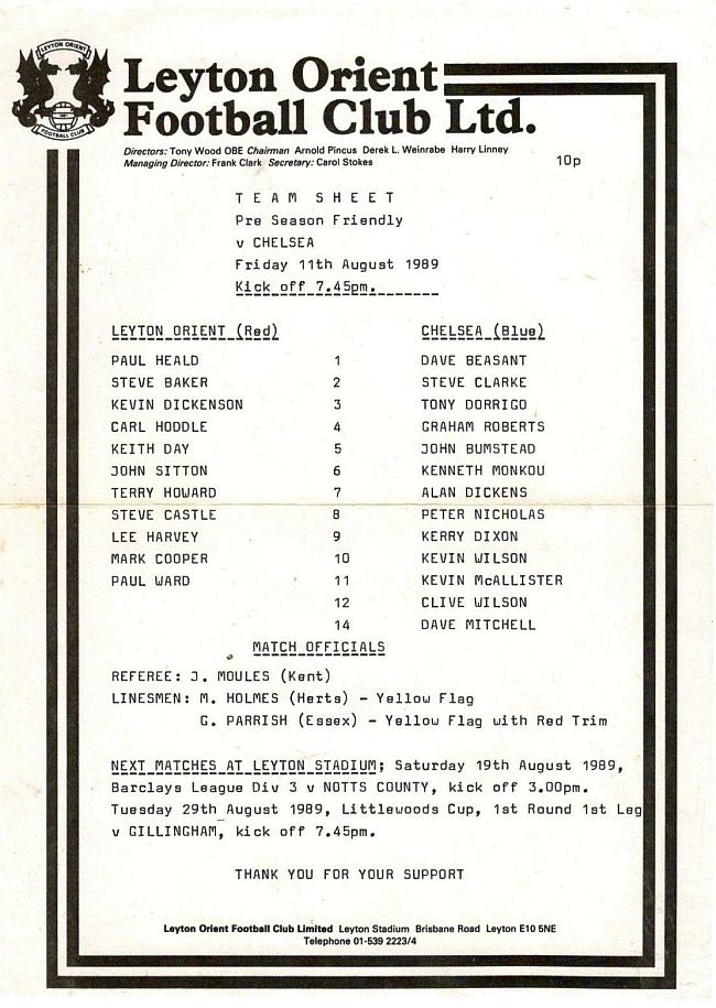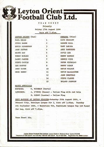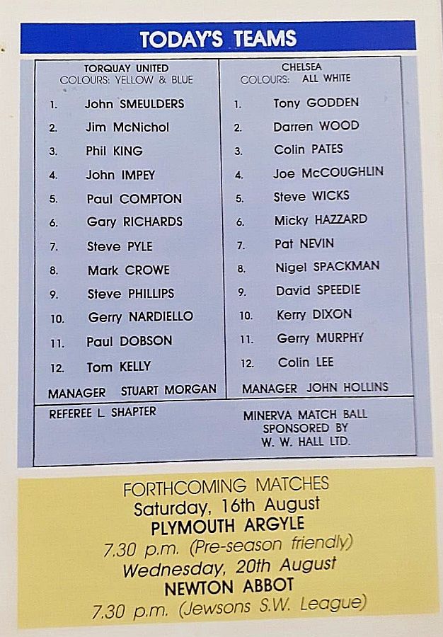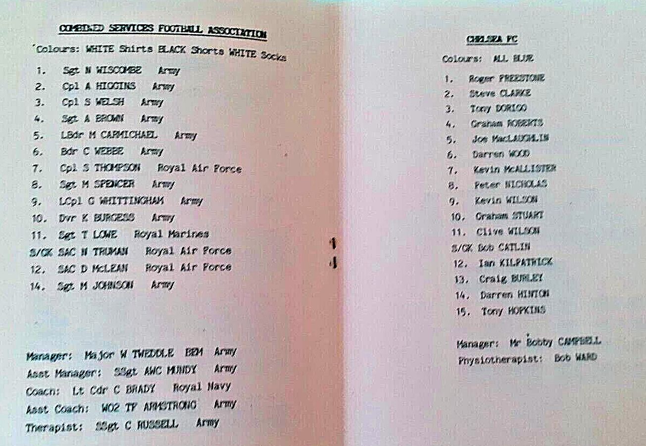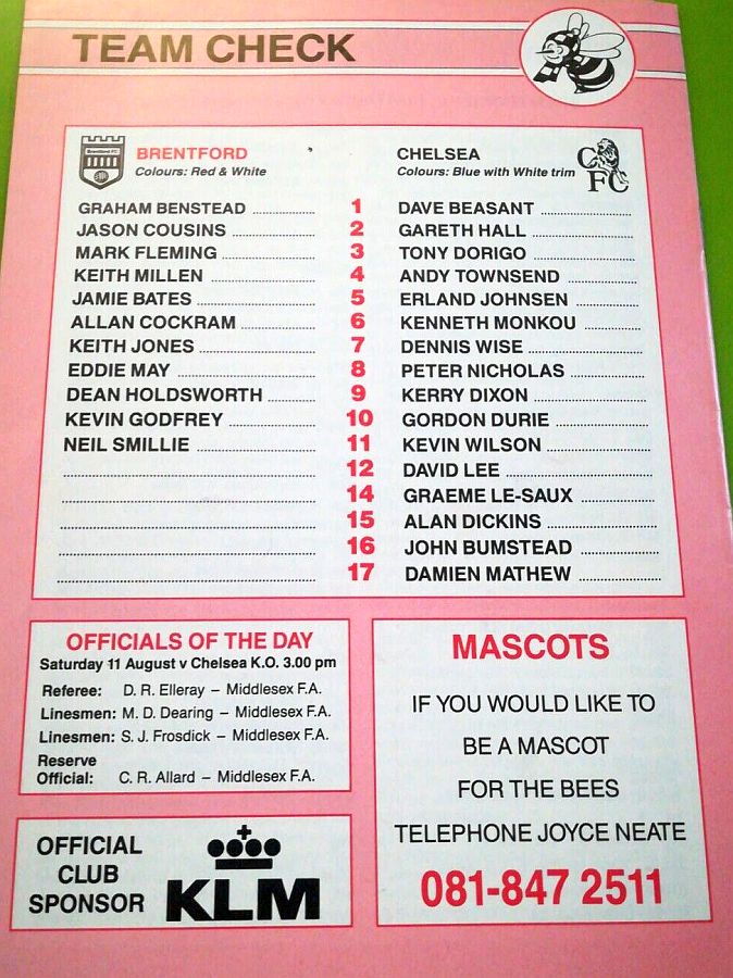Dave Beasant, Gareth Hall, Tony Dorigo (Kevin McAllister), Andy Townsend, David Lee, Ken Monkou (Erland Johnsen), Dennis Wise, Peter Nicholas, Kerry Dixon, Kevin Wilson, Graeme Le Saux |