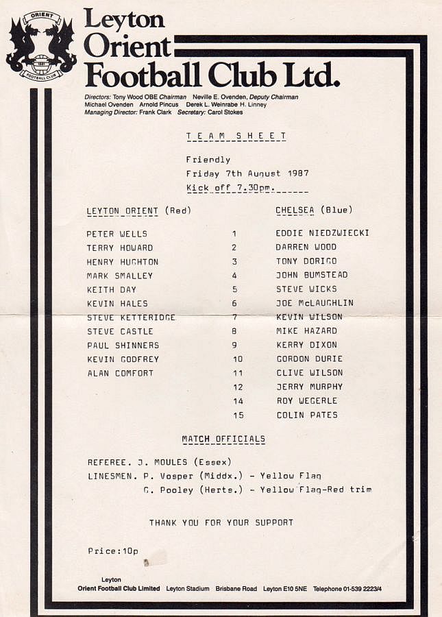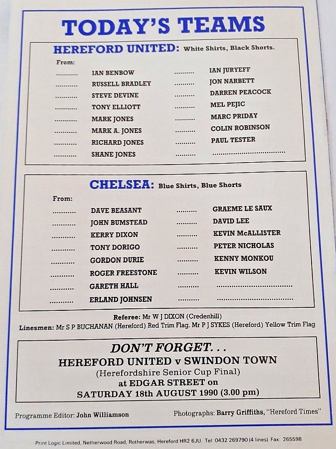 Roger Freestone, Gareth Hall (Jason Cundy), John Bumstead (Graeme Le Saux), Andy Townsend, Erland Johnsen, Ken Monkou (David Lee), Dennis Wise (Craig Burley), Peter Nicholas (Alan Dickens), Kerry Dixon, Kevin Wilson (Graham Stuart), Damian Matthew |