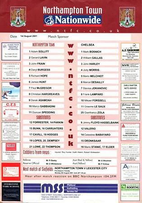 Mark Bosnich, Mario Melchiot (Celestine Babayaro 46), William Gallas, Marcel Desailly (Valerio di Cesare), Jon Harley (Mario Stanic 46), Frank Lampard, Jody Morris (Jesper Gronkjaer 46), Slavisa Jokanovic, Graeme LeSaux, Mikael Forsell (Jimmy Floyd Hasselbaink 46), Gianfranco Zola (Eidur Gudjohnsen) |