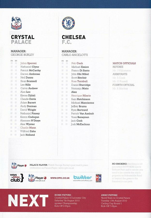 Ross Turnbull (Henrique Hilario 46), Billy Clifford (Nathaniel Chalobah 46), Jeffrey Bruma, Patrick Van Aanholt (Rohan Ince 64), Ryan Bertrand, Mikel Obi (Connor Clifford 83), Michael Essien (Jack Cork 73), Nemanja Matic, Josh McEachran (Scott Sinclair 46), Franco Di Santo (Milan Lalkovic 64), Sturridge |