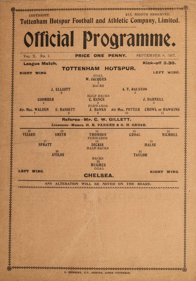 Hufton, Cope, Tirrell, Burton, Tresadern, Johnstone, Yellop, Tufnell, Puddefoot, Cunningham, Burke |