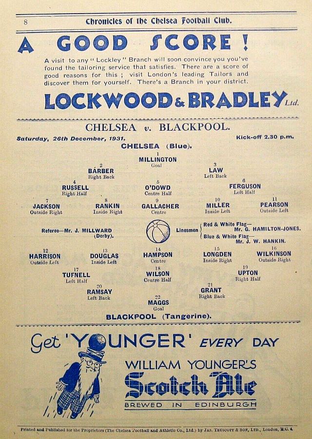 1 Sam Millington, 2 George Barber, 3 Tommy Law, 4 William Russell, 5 Peter O'Dowd, 6 Sid Bishop, 7 Jackie Crawford, 8 John Rankin, 9 Hughie Gallacher, 10 Harold Miller, 11 Wilf Chitty |