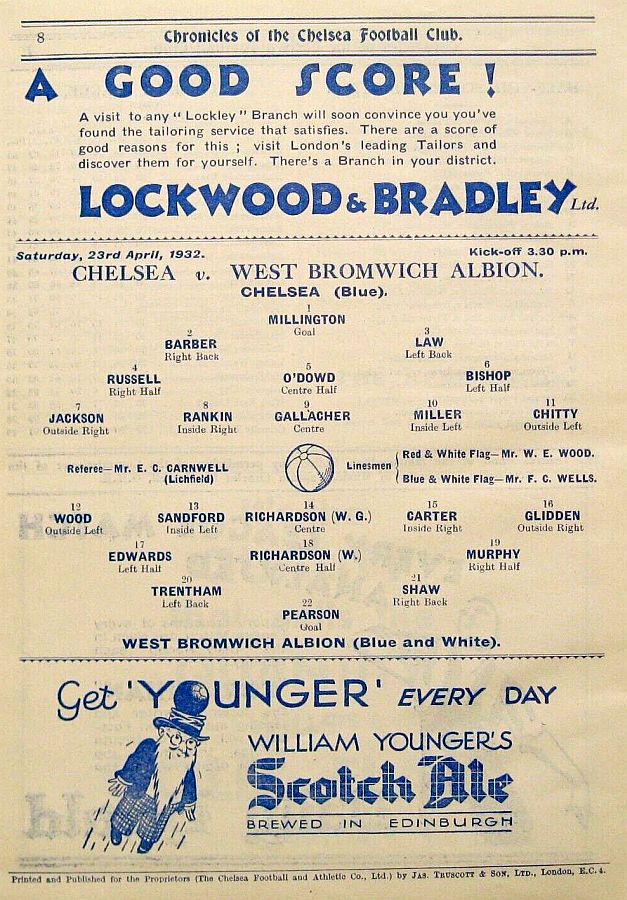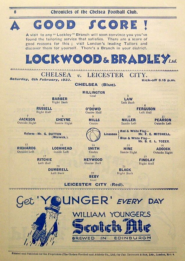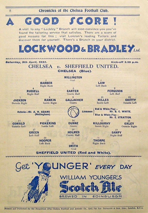 Jimmy McLaren, Adam Black, Reg Osborne, Billy Findlay, Roger Heywood, Arthur Lochhead, Hugh Adcock, Ernie Hine, Arthur Chandler, Sep Smith, Len Barry |
