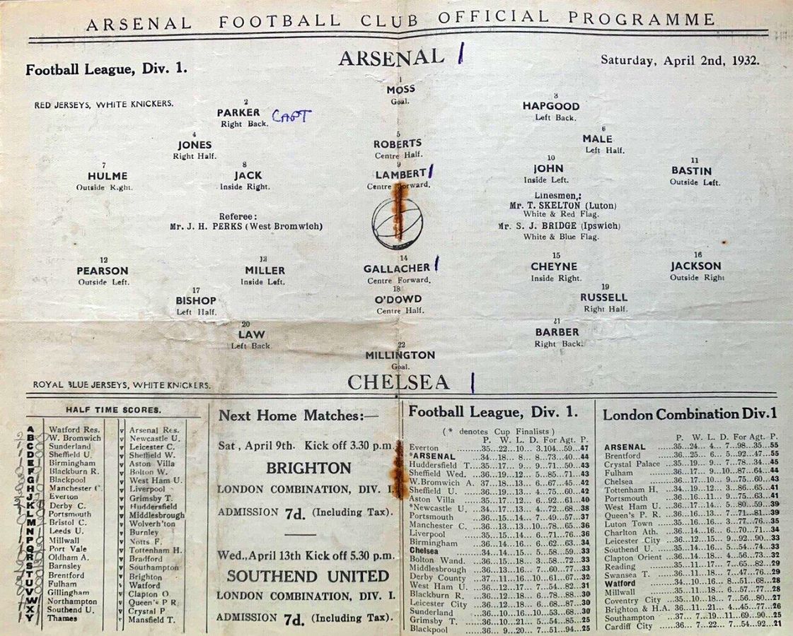 Frank Moss, Tom Parker, Eddie Hapgood, Charlie Jones, Herbie Roberts, George Male, Joe Hulme, David Jack, Jack Lambert, Bob John, Cliff Bastin |