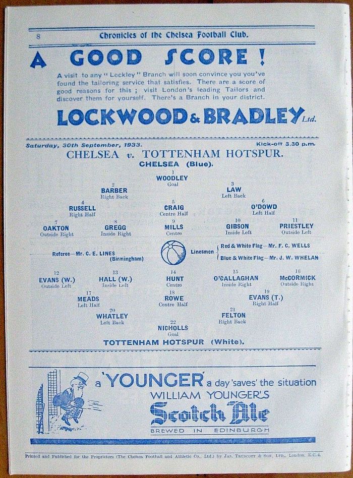 1 John Jackson, 2 Leslie Odell, 3 Tommy Law, 4 William Russell, 5 Allan Craig, 6 Peter O'Dowd, 7 Eric Oakton, 8 George Mills, 9 Hughie Gallacher, 10 George Gibson, 11 Jack Horton |