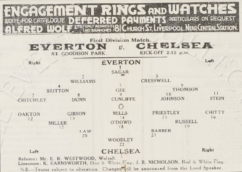 Ted Sagar, Warney Cresswell, Jack Jones, Cliff Britton, Charlie Gee, Jock Thomson, Albert Geldard, Jimmy Cunliffe, Tommy White, Alex Stevenson, Jimmy Stein |