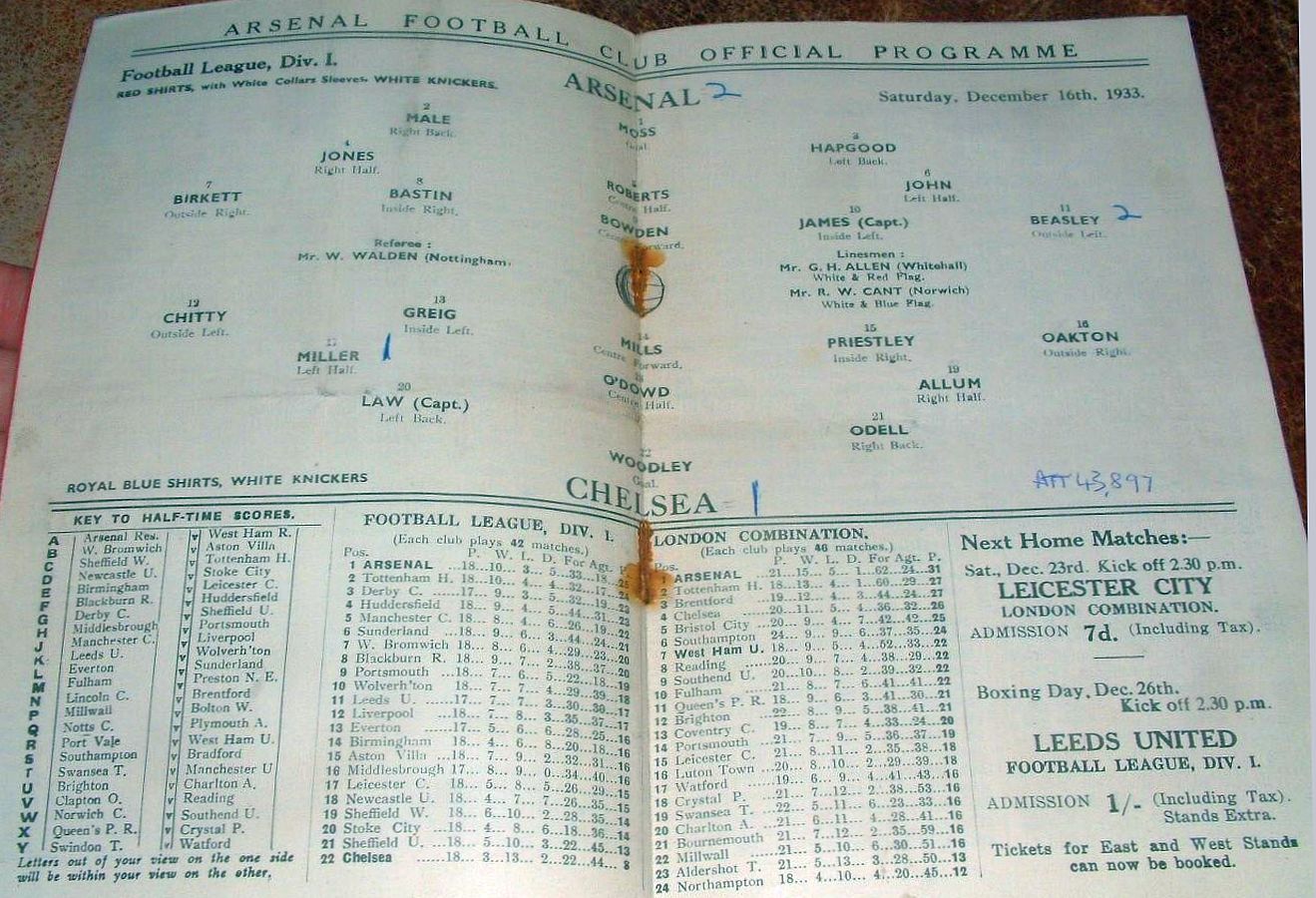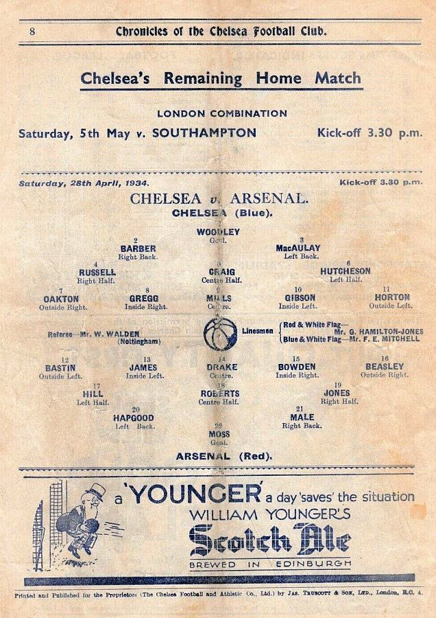 Frank Moss, George Male, Eddie Hapgood, Charlie Jones, Herbie Roberts, Frank Hill, Pat Beasley, Ray Bowden, Ted Drake, Alex James, Cliff Bastin |