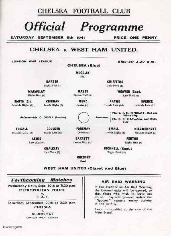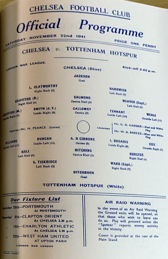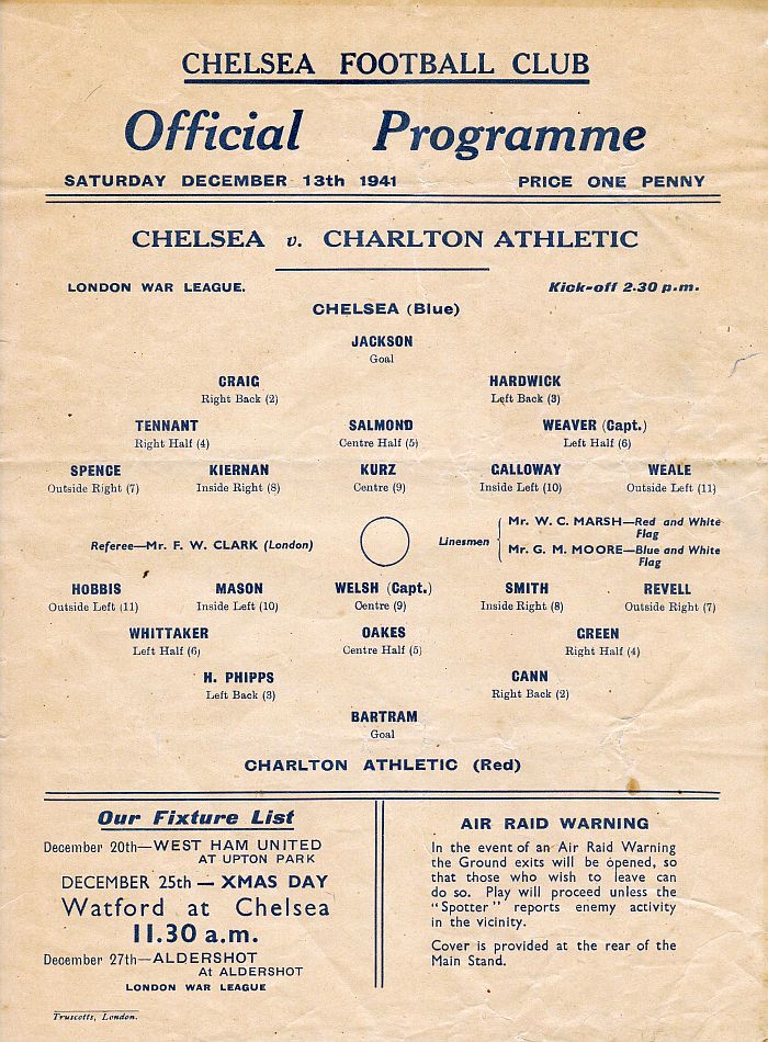Vic Woodley, George Hardwick, J Johnson, Bob Griffiths, Peter G Vause, Sam Weaver, C Smith, Tommy Kiernan, George Kurz, Joe Payne, Dickie Spence |