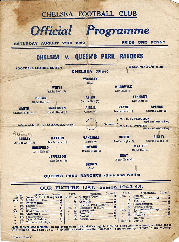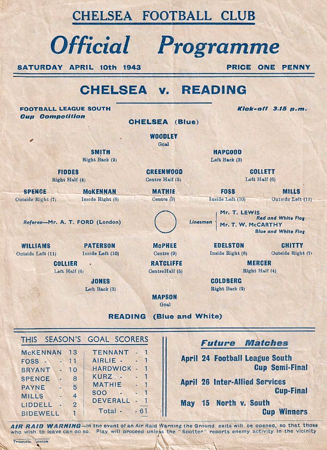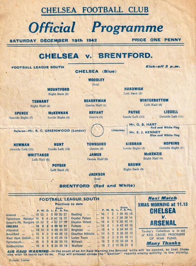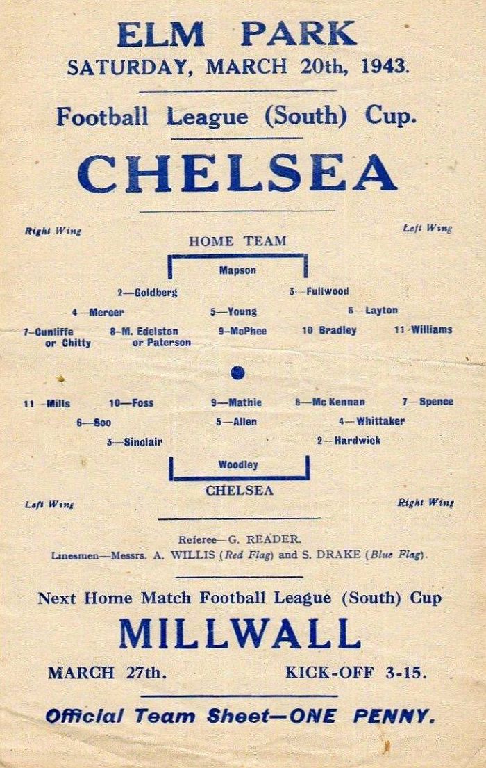 Vic Woodley, Alec White, George Hardwick, William Brown, Jimmy Allen, Albert Tennant, Dickie Spence, Peter McKennan, Seton Airlie, Joe Payne, Dickie Foss |