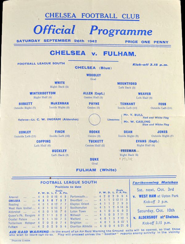 Saturday, 26th September 1942 at 15:15 |