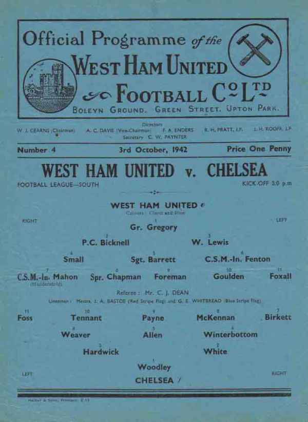 Vic Woodley, Reg C Mountford, George Hardwick, Harold Cothliff, Ron Greenwood, Harry Bearryman, Dickie Spence, Sid Bidewell, Bernard L Bryant, Dickie Foss, Harold Deverall |