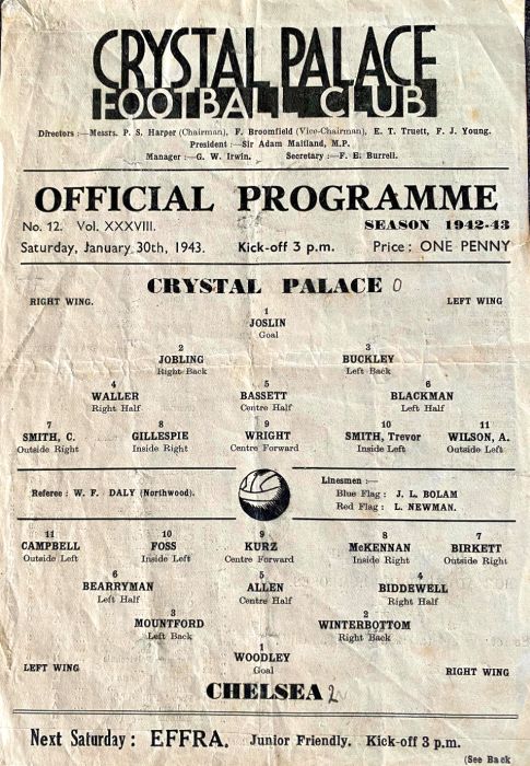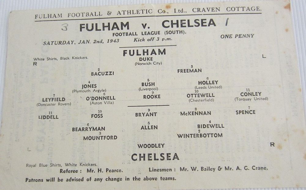 Saturday, 30th January 1943 at 15:00 |