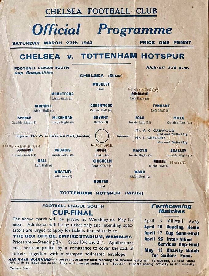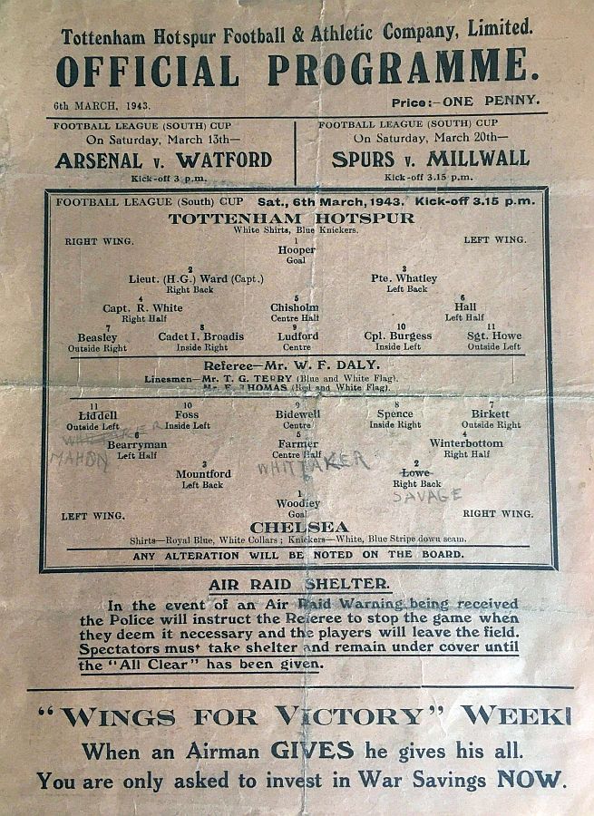 Vic Woodley, Reg C Mountford, George Hardwick, Sid Bidewell, William Whittaker, Albert Tennant, Dickie Spence, Frank Soo, Dave Mathie, Dickie Foss, George Mills |