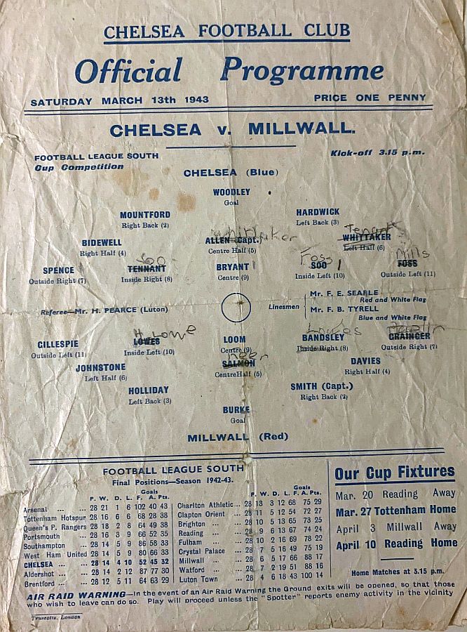 Vic Woodley, Alec White, George Hardwick, Albert Tennant, Jimmy Allen, Sam Weaver, Dickie Spence, Seton Airlie, Joe Payne, Len Butt, Dickie Foss |
