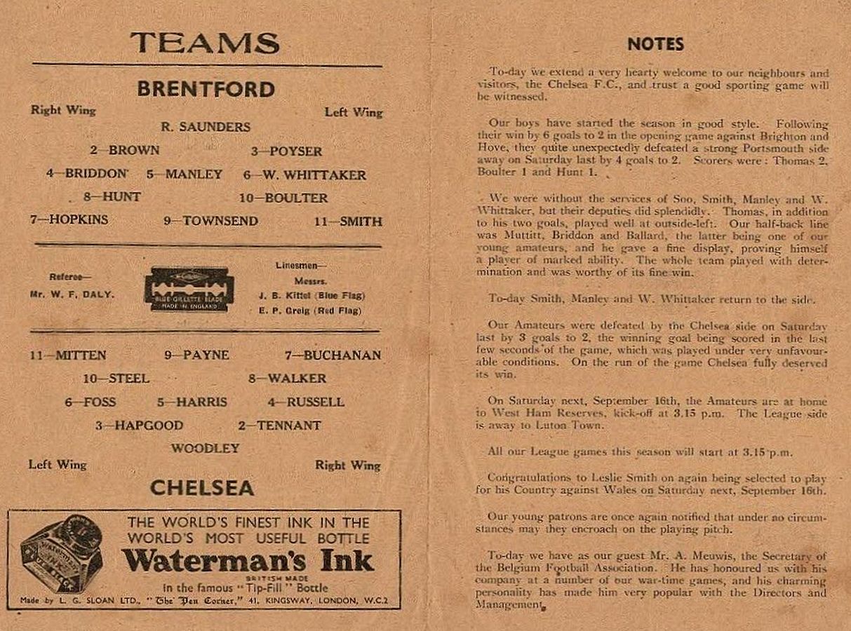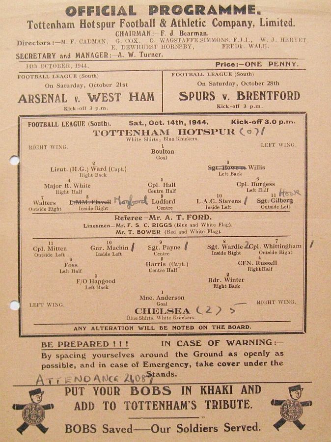 Vic Woodley, Bart Purvis, Eddie Hapgood, Albert Tennant, John Harris, Dickie Foss, Peter Buchanan, Tommy Walker, Joe Payne, George Mills, Charlie Mitten |