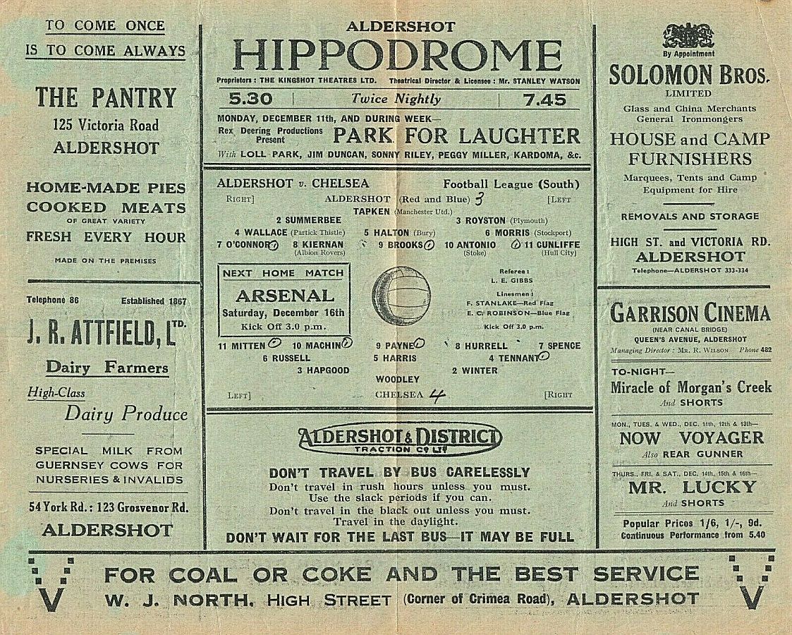 Vic Woodley, Ralph Cowan, George Hardwick, Leslie J Jones, Matt Gillies, Dickie Foss, Peter Buchanan, Willie Hurrell, Sid Bidewell, Alex Machin, Tommy Hassell |