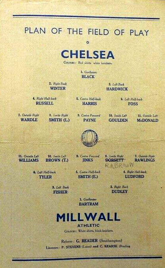Ian Black, Danny Winter, George Hardwick, Robert Russell, John Harris, Dickie Foss, George Wardle, Leslie Smith, Joe Payne, Len Goulden, Jack McDonald |