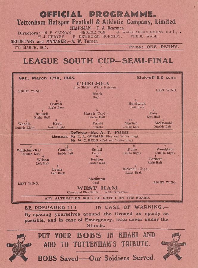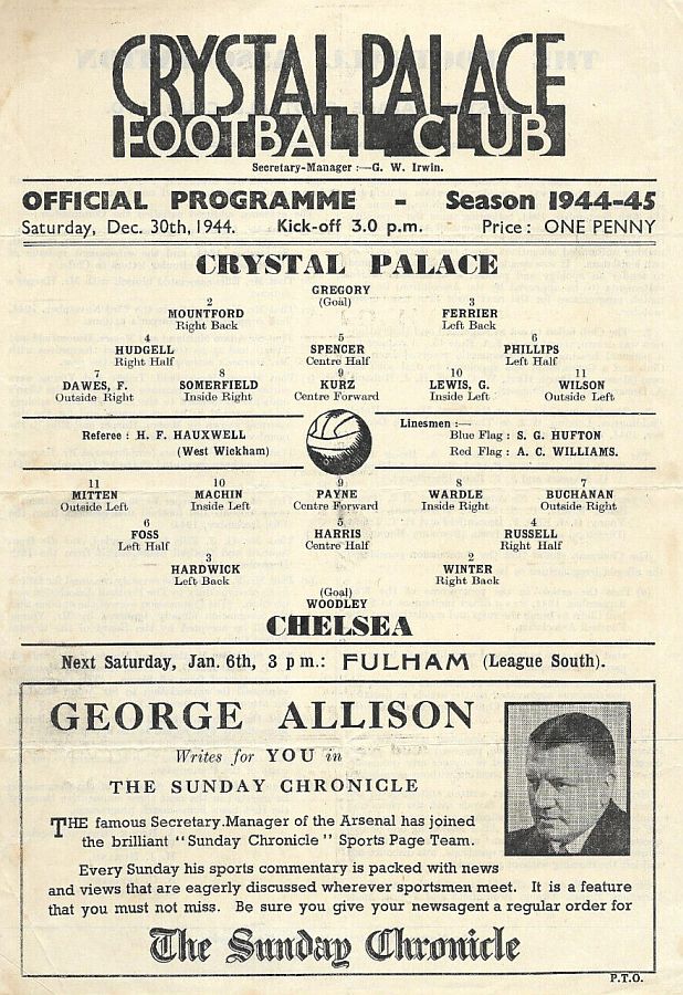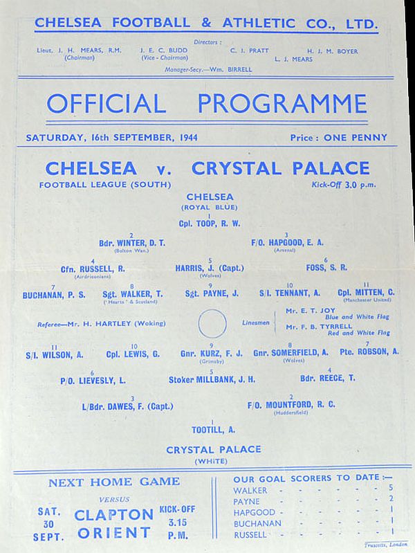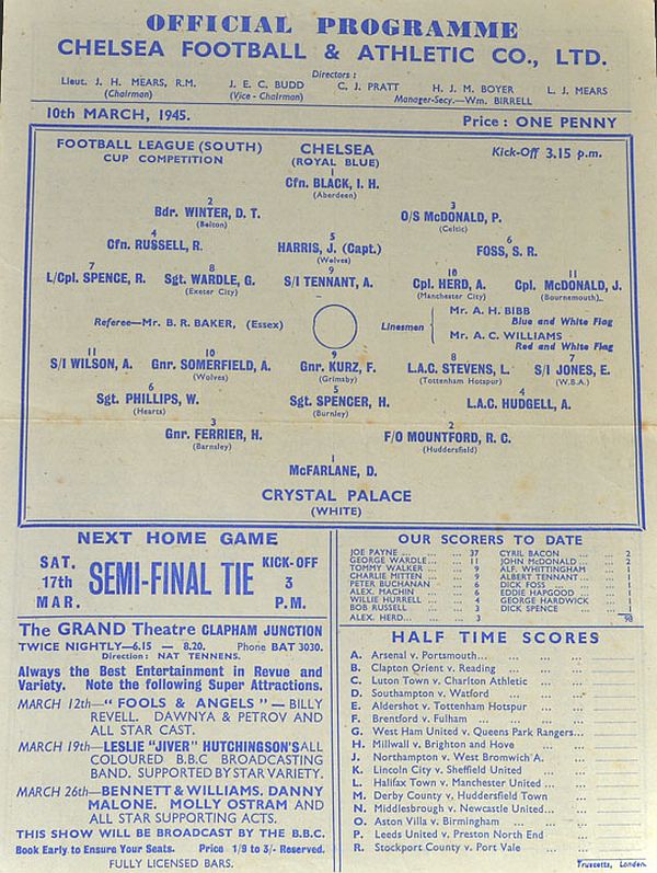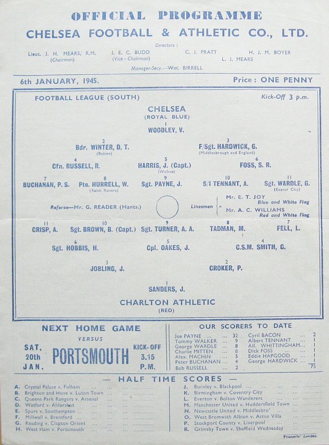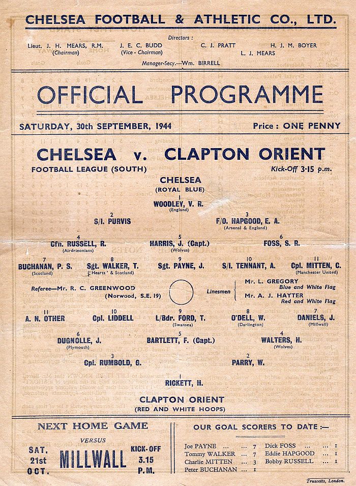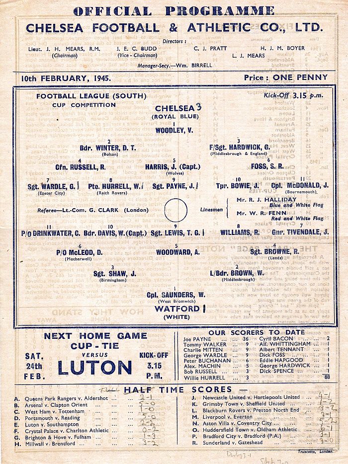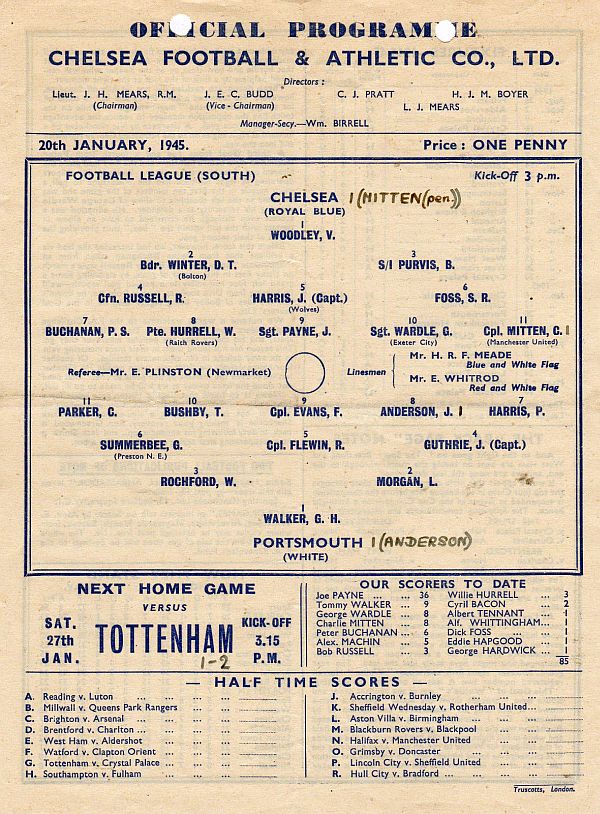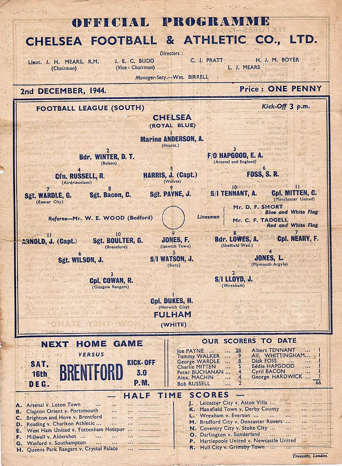 Vic Woodley, Danny Winter, George Hardwick, Robert Russell, John Harris, Dickie Foss, Peter Buchanan, Tommy Walker, Joe Payne, Albert Tennant, Charlie Mitten |