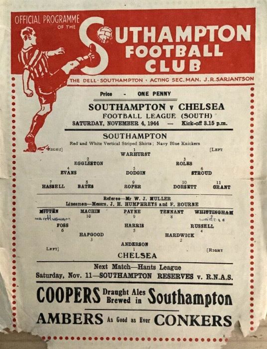 Vic Woodley, Ernie Muttitt, Bart Purvis, Robert Russell, John Harris, Dickie Foss, Peter Buchanan, Tommy Walker, Joe Payne, Albert Tennant, Charlie Mitten |