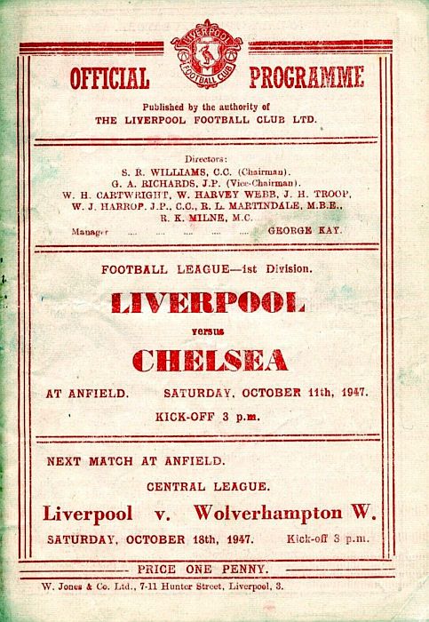 Cyril Sidlow, Jim Harley, Ray Lambert, Phil Taylor, Bill Jones, Bob Paisley, Alex Muir, Kevin Baron, Albert Stubbins, Willie Fagan, Billy Liddell |