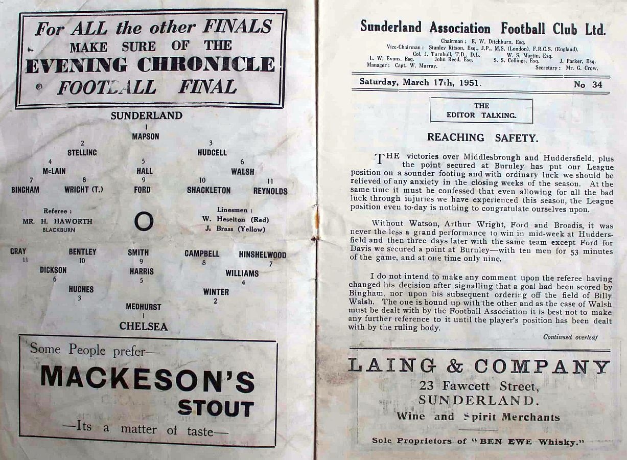 Johnny Mapson, Jack Stelling, Arthur Hudgell, Tommy McLain, Fred Hall, Billy Walsh, Billy Bingham, Tommy Wright, Trevor Ford, Len Shackleton, Tommy Reynolds |