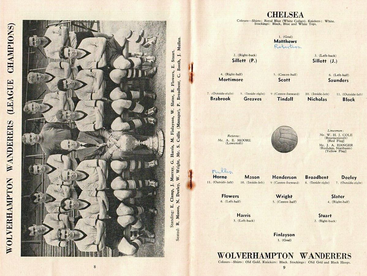 Malcolm Finlayson, Eddie Stuart, Gerry Harris, Bill Slater, Billy Wright, Ron Flowers, Norman Deeley, Peter Broadbent, Jackie Henderson, Bobby Mason, Jimmy Mullen |