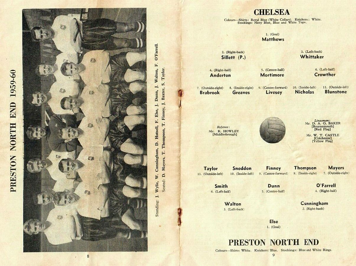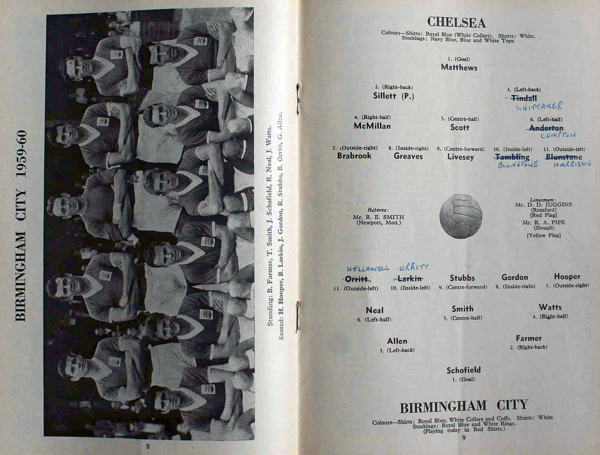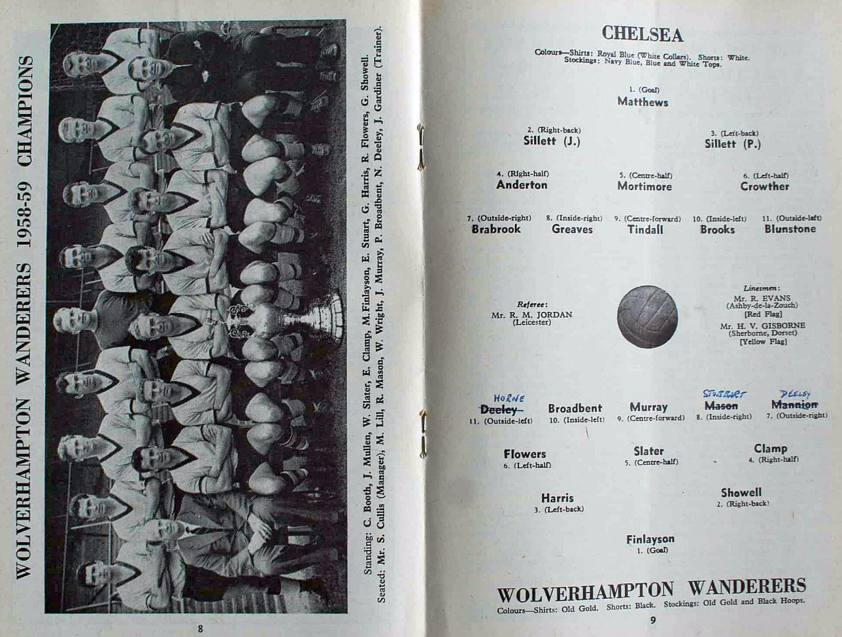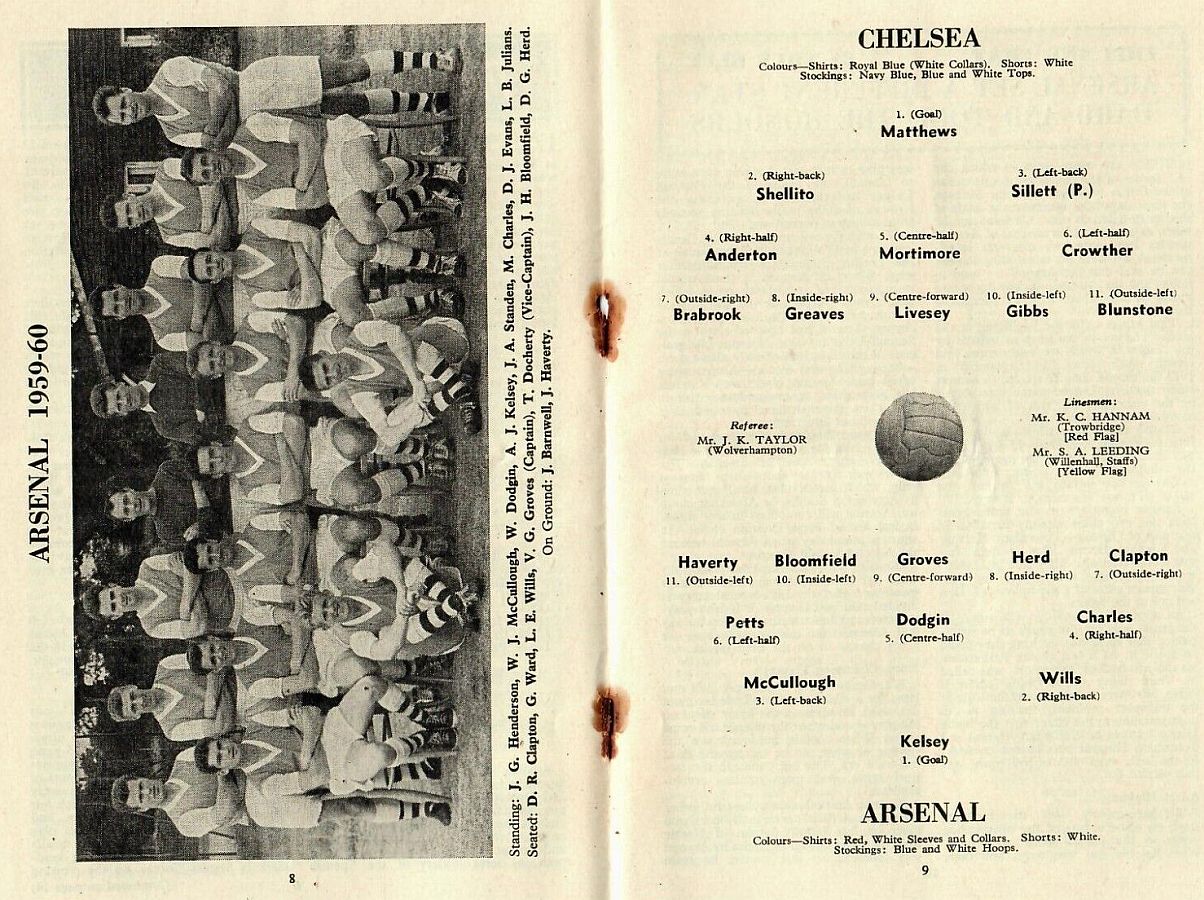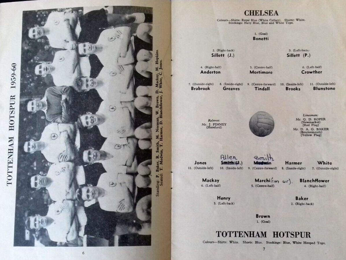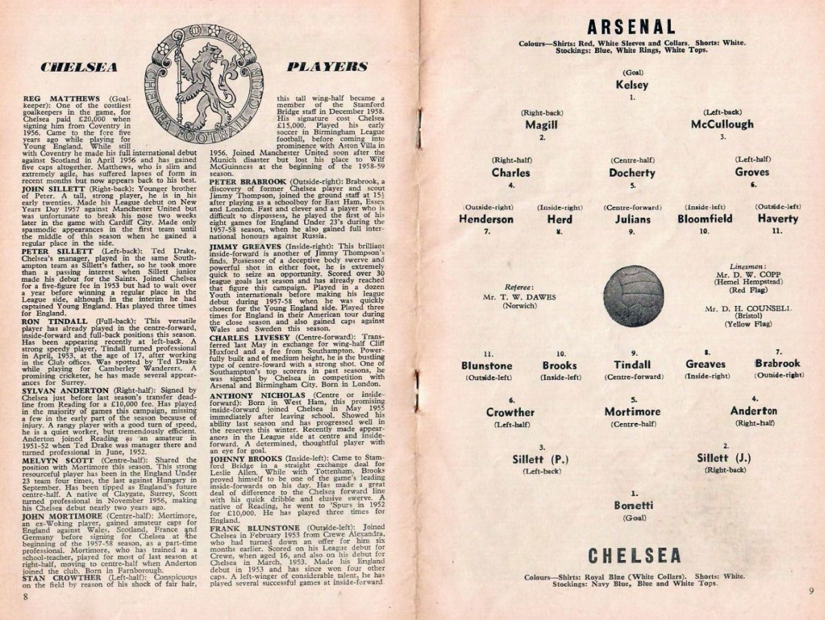 1 Reg Matthews, 2 Peter Sillett, 3 Richard Whittaker, 4 Sylvan Anderton, 5 John Mortimore, 6 John Compton, 7 Peter Brabrook, 8 Jimmy Greaves, 9 Charlie Livesey, 10 Tony Nicholas, 11 Frank Blunstone |