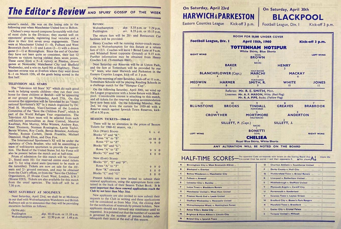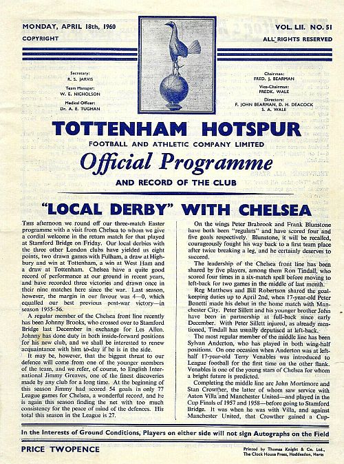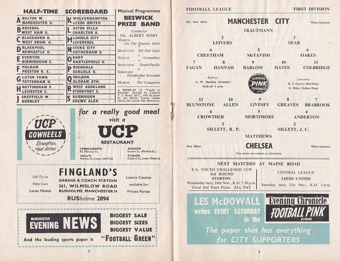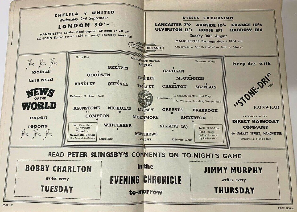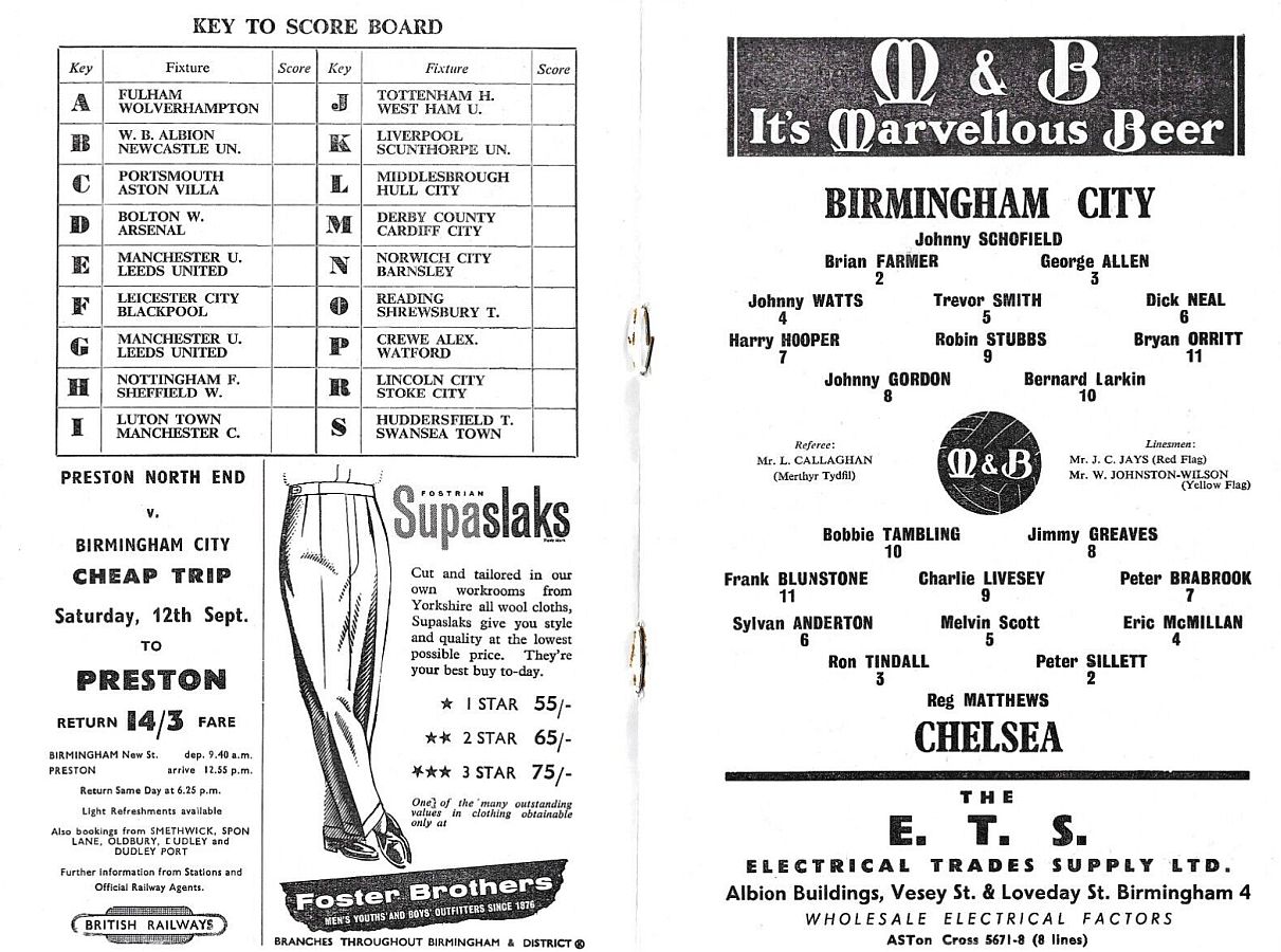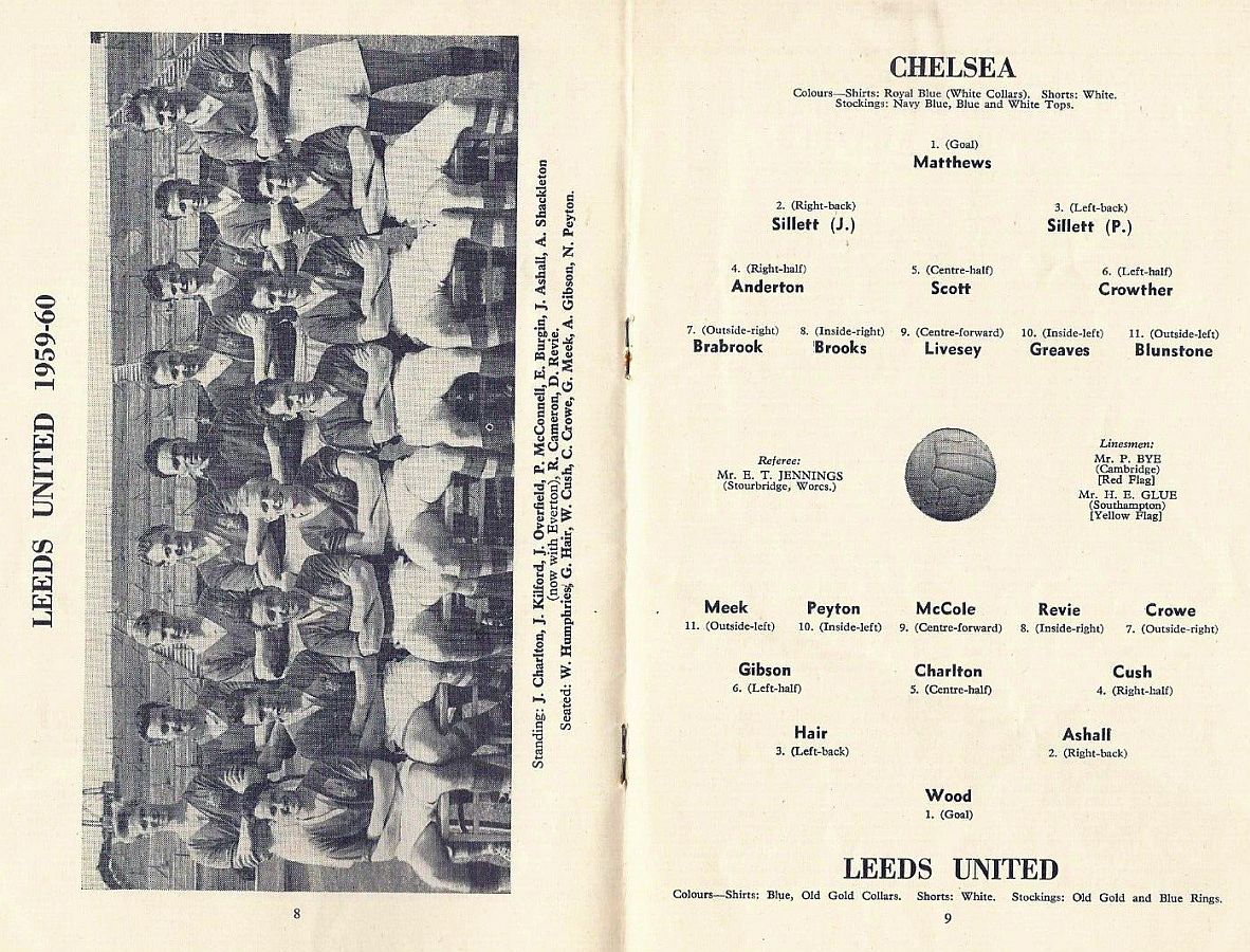 1 Reg Matthews, 2 Peter Sillett, 3 Richard Whittaker, 4 Sylvan Anderton, 5 John Mortimore, 6 John Compton, 7 Peter Brabrook, 8 Jimmy Greaves, 9 Charlie Livesey, 10 Tony Nicholas, 11 Frank Blunstone |