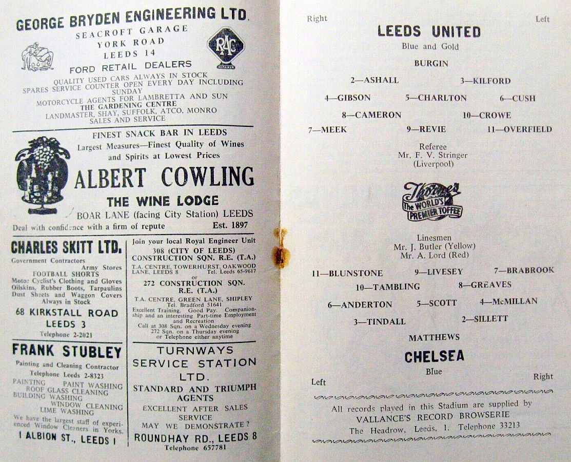 Ted Burgin, Jimmy Ashall, John Kilford, Archie Gibson, Jack Charlton, Wilbur Cush, George Meek, Bobby Cameron, Don Revie, Chris Crowe, Jack Overfield |