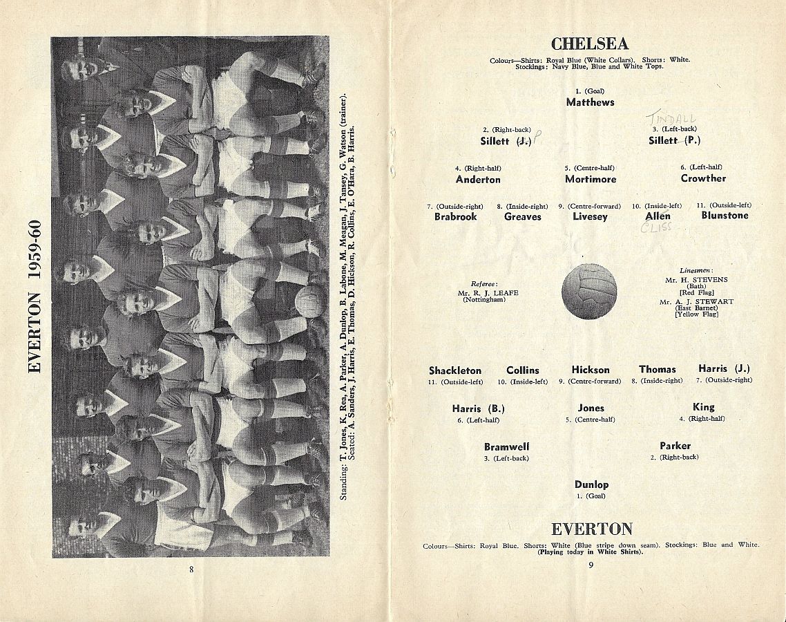 1 Peter Bonetti, 2 John Sillett, 3 Peter Sillett, 4 Sylvan Anderton, 5 John Mortimore, 6 Stan Crowther, 7 Johnny Brooks, 8 Jimmy Greaves, 9 Ron Tindall, 10 Derek Gibbs, 11 Frank Blunstone |